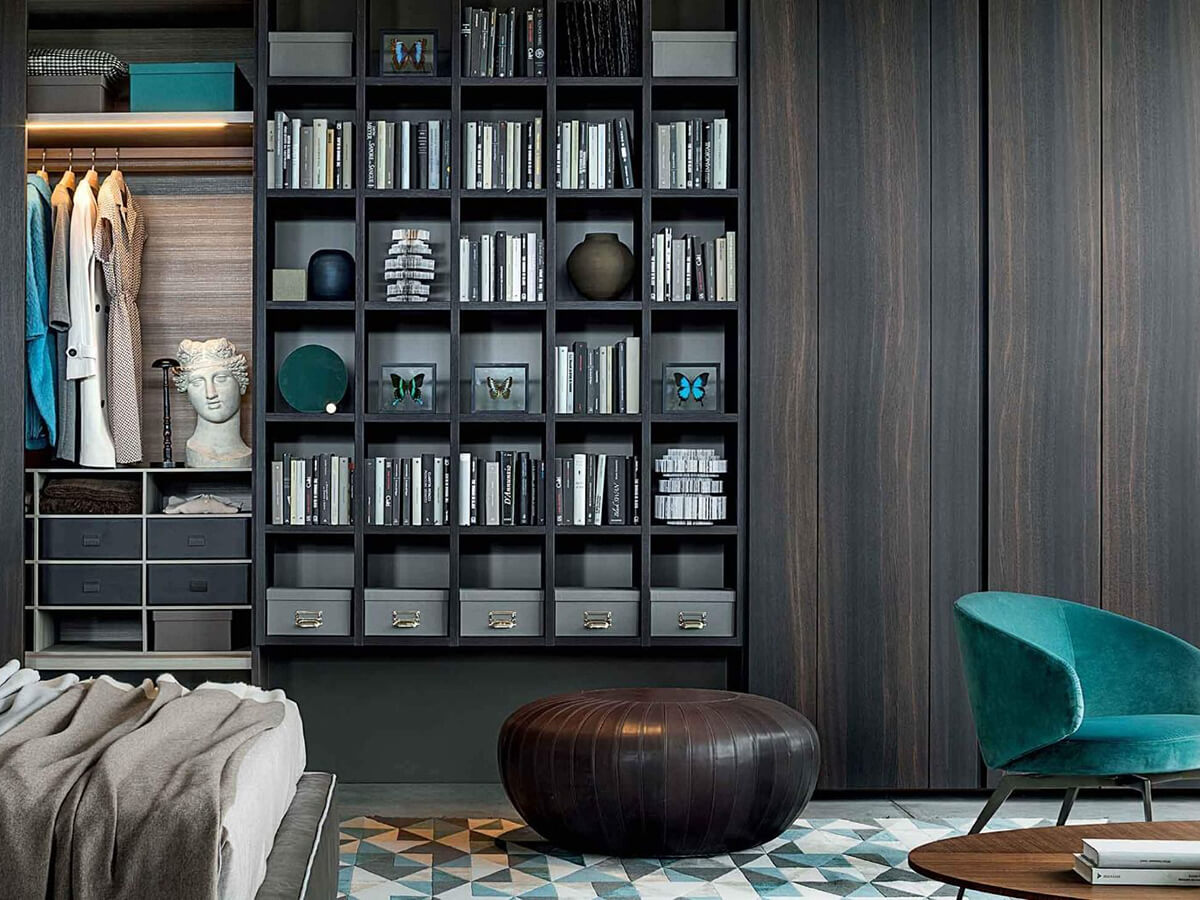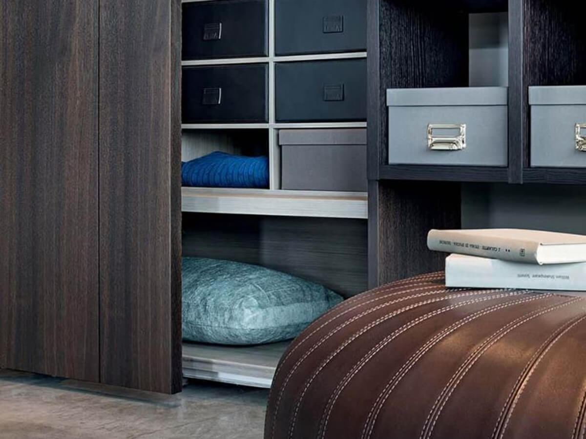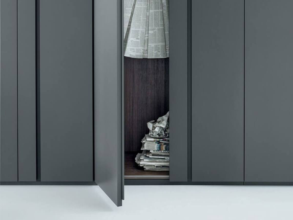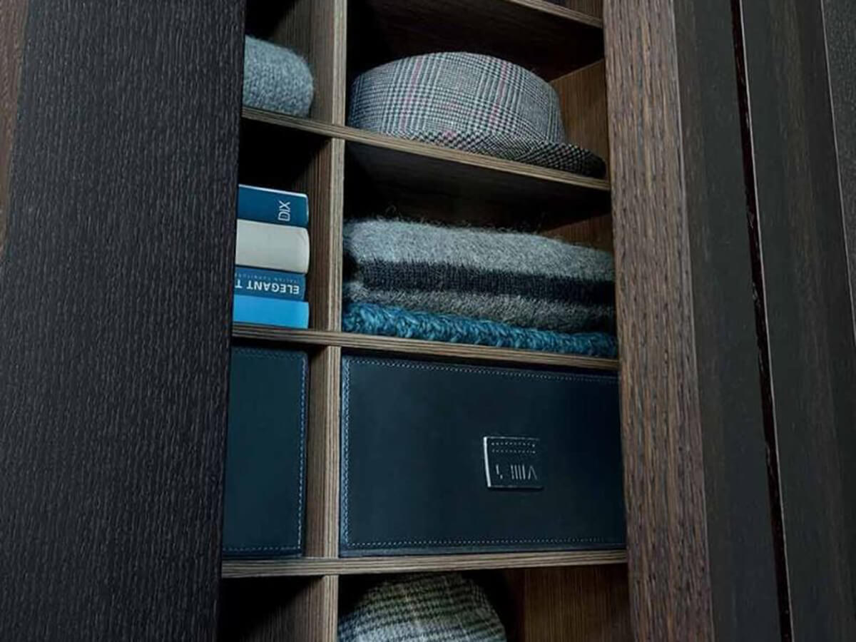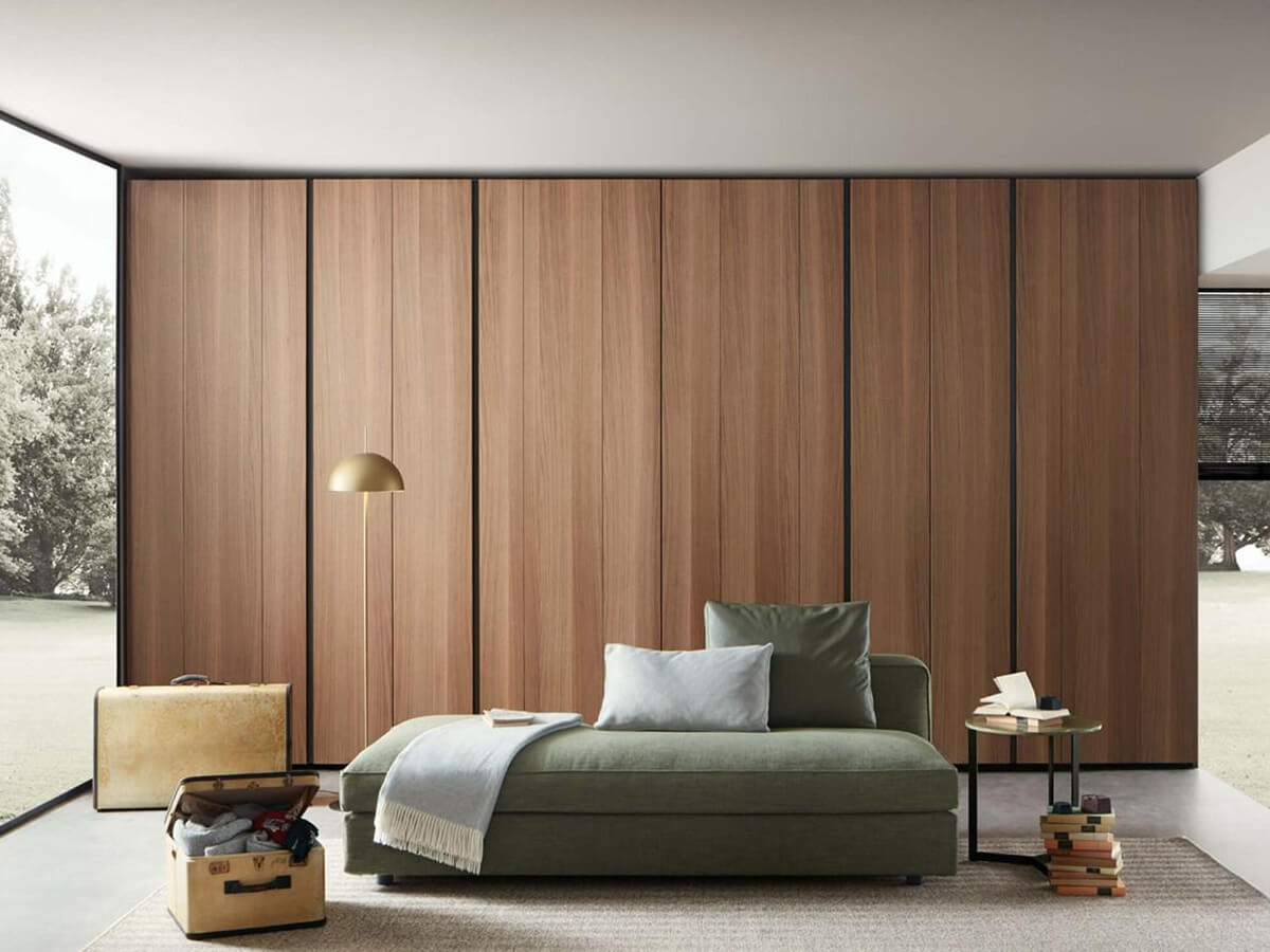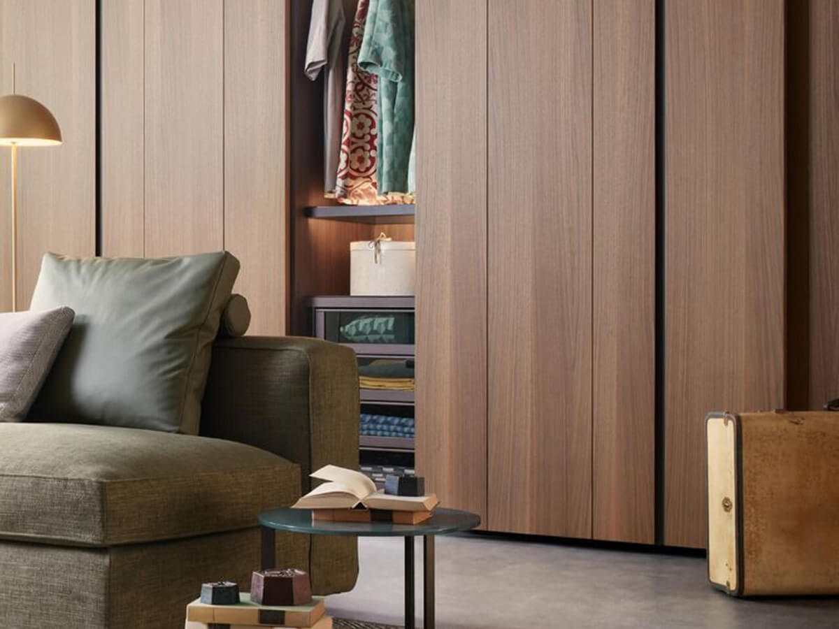 The Naica wardrobe by Lema, designed by the duo Cairoli & Donzelli, is characterized by the strong graphic sign of the grooves that run along the doors along their entire height, giving the composition a three-dimensional effect. Wider and recessed grooves then take on a handle function and contribute to the effect of dynamism, accentuated even more by the elegant wood grain for the wood finishes. The doors are also available in matt lacquered version and are available both for hinged wardrobes and for sliding and coplanar wardrobes: in this case a sophisticated compass opening system is used that allows them to be aligned by placing them on a single plane.Naica is part of the historic Lema Armadio al Centimetro collection, which allows extreme versatility by adapting to the most diverse design needs.