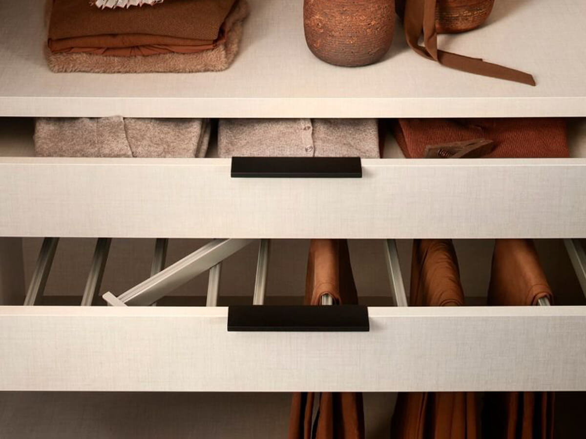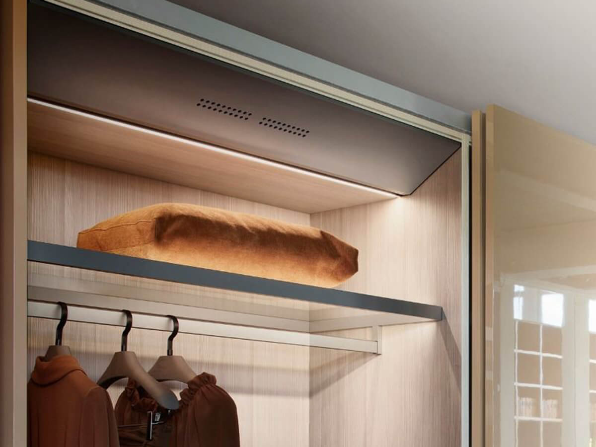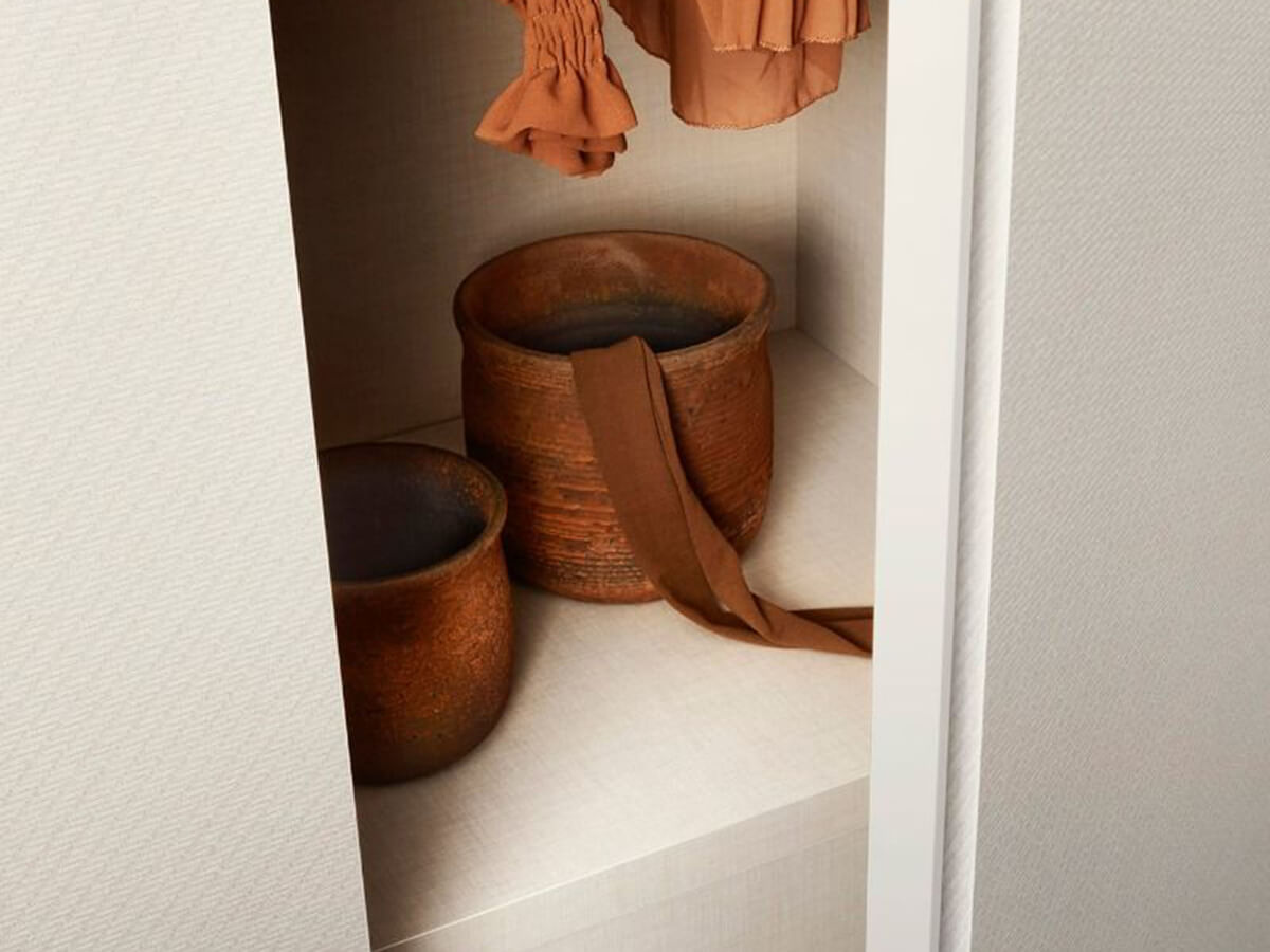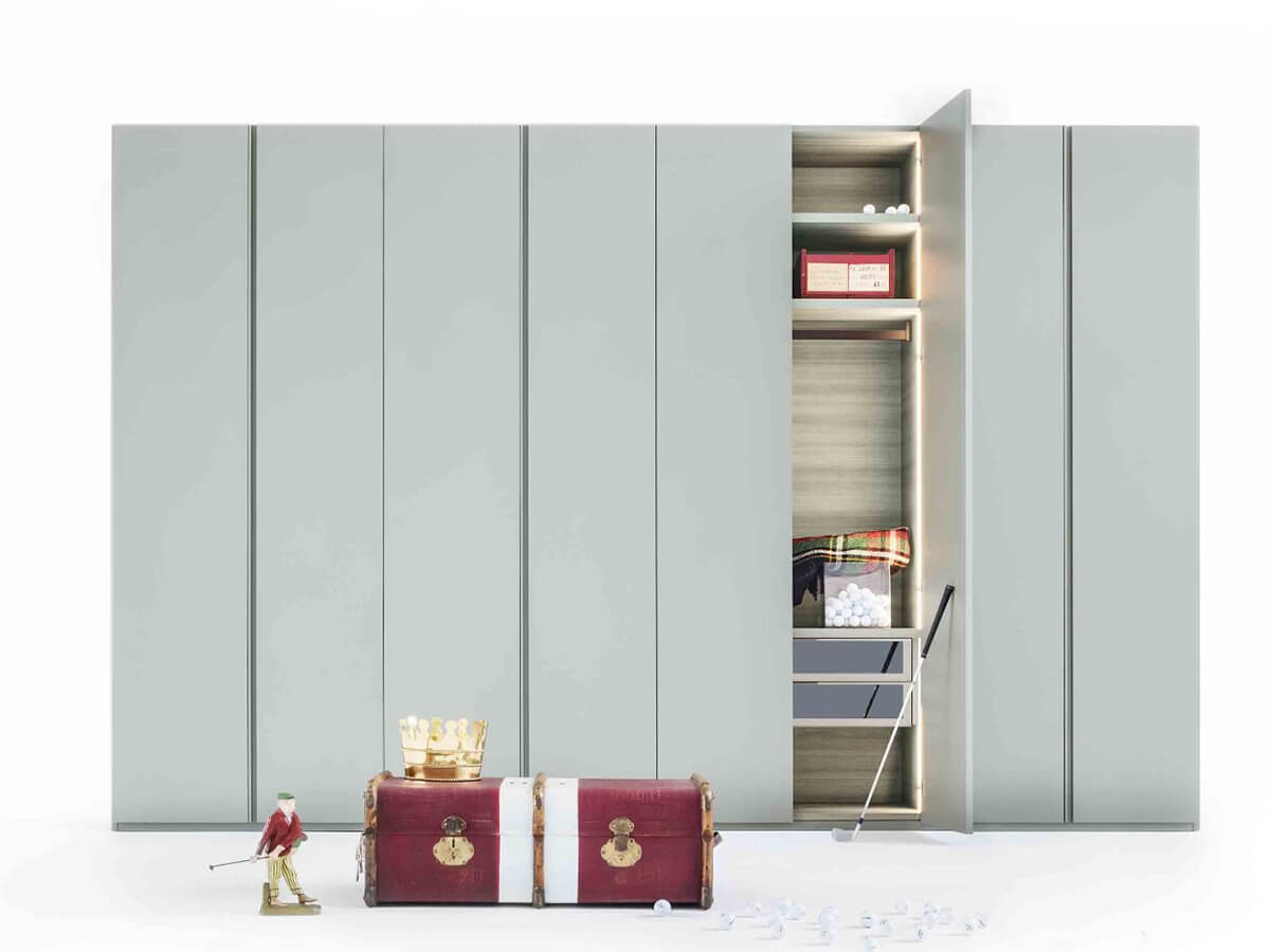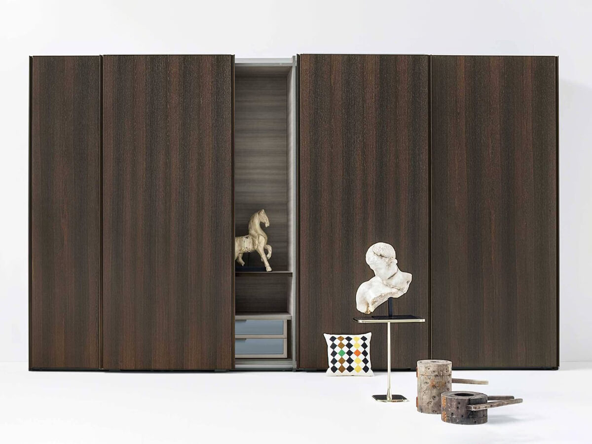 The Text wardrobe by Lema is one of the most famous and versatile variations of the famous "Armadio al Centimetro" collection, which allows the creation of flexible tailor-made projects for the sleeping area capable of meeting all kinds of needs. The same variety of proposals is also available for the internal equipment: from drawers to trouser racks, belt racks and shoe racks, in addition to the classic shelves and clothes hanger bars with integrated light.The Text door is characterized by the thin cut that runs along its entire height and which also acts as a groove handle, a delicate and composed graphic sign. The Text wardrobe can be made in a hinged, sliding or coplanar version and also allows a wide choice of finishes: glossy and matt lacquers, different natural or melamine essences.
