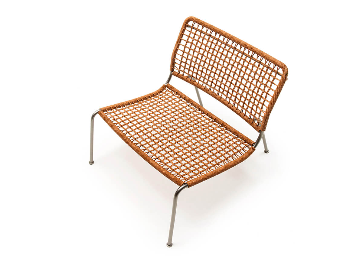 Light and essential, an armchair capable of evoking different stylistic trends in a single fine display concept. Frog talks about summer atmospheres, warm and airy locations where you want to enjoy the comfort of a reading or a good conversation. Frog was born from the union of intertwined fibers and a solid steel base, merged into an absolutely contemporary re-enactment of the "old style" chairs we all know. Available in numerous variants to better adapt to the needs of the house, it also comes in different colors. For those who love slightly warmer atmospheres, it is also available in leather, as well as fabric. Ideal for all environments, from the most to the least sophisticated.