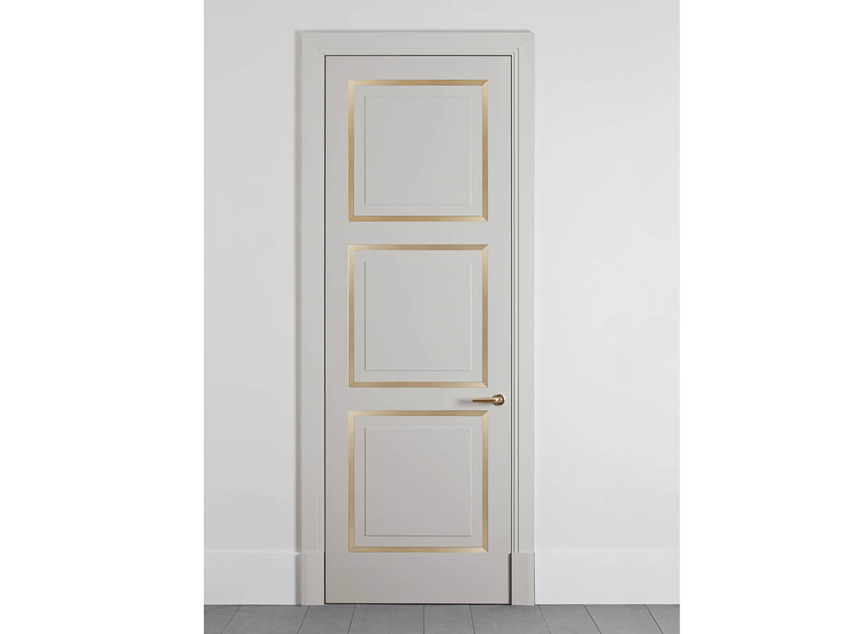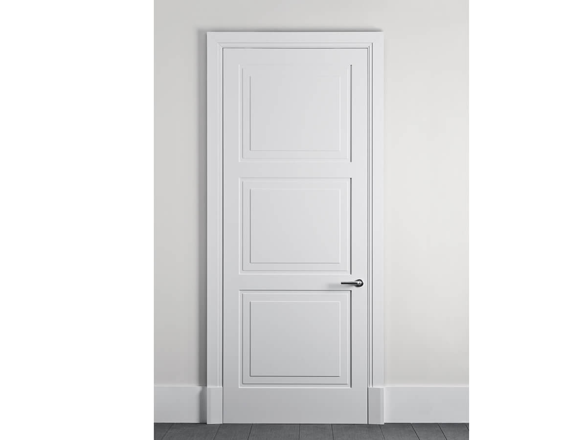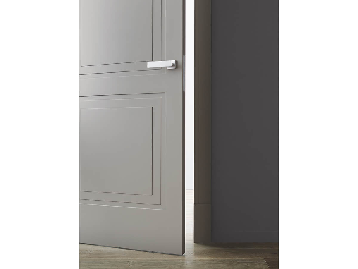 The Avenue swing door by Lualdi is characterized by its typically American taste. The door, designed by the great American architect Robert A.M. Stern, is richly decorated with single, double or triple mirrors and is inspired by the style in vogue in pre-war New York. A design full of suggestion that is accompanied by a technical realization of exquisite workmanship: the Avenue door consists of a wooden door with a honeycomb structure and a telescopic casing coplanar with the door, both available in different matt lacquer finishes. The handles can be selected from those of the wide Lualdi range, the closing lock is magnetic.