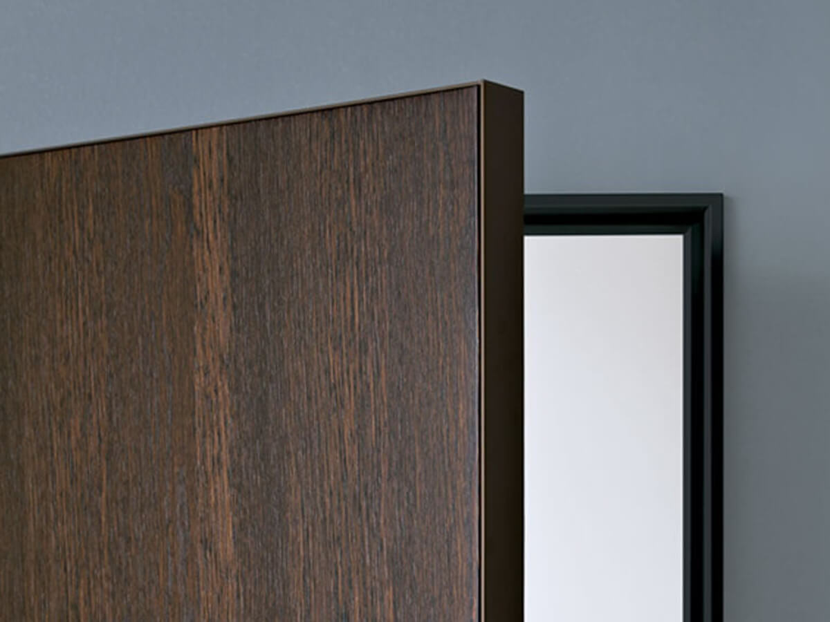 The L41 door by Lualdi bears the signature of one of the great names in contemporary design, the famous Piero Lissoni. His design is characterized by lightness and minimalism: the profile is in fact characterized only by a thin metal jamb which, with its reduced thickness, best enhances the coplanarity between wall and door. The door has a part with a honeycomb or glass structure, 41 mm thick, equipped with a magnetic lock, concealed hinges and anti-noise seals. L41 is a very modern door, in the name of minimalism, perfect for environments with a distinctly contemporary taste.