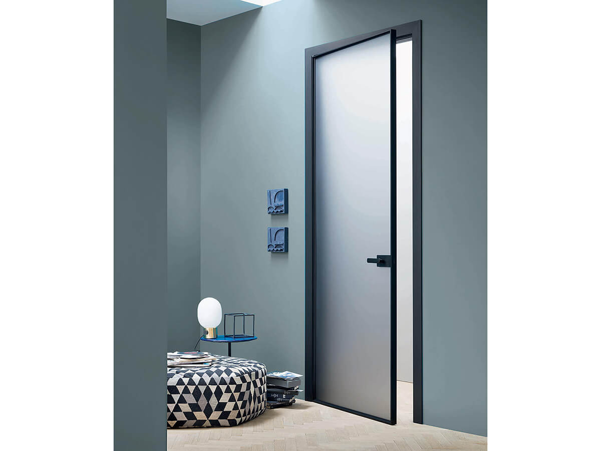 The L7 door by Lualdi, designed by Piero Lissoni, is proposed as a light and essential model, of refined minimalism. The glass door of L7 is enhanced by the outline of the aluminum metal profile, in a combination of materials that has always been a great classic in door design. In L7, however, this mix is enriched by a very wide selection of glass available: from the classic extra-clear transparent to a wide choice of colored dyes or more vivid retro lacquered dyes, but also real "special effects" such as glass with retina or the ribbed processing of the Flutes glass, and much more. L7 is also available in the L7 Large version, with larger proportions.