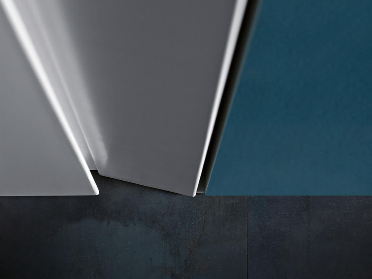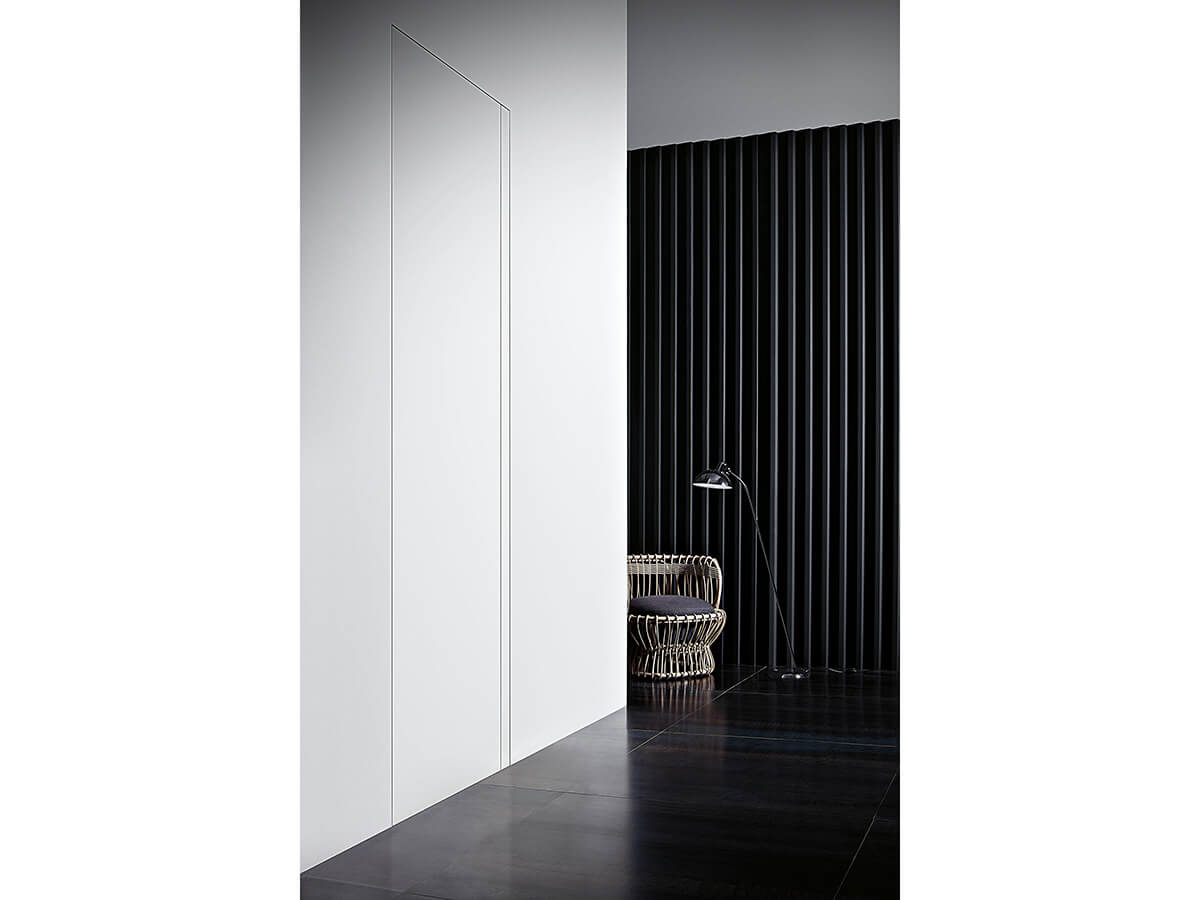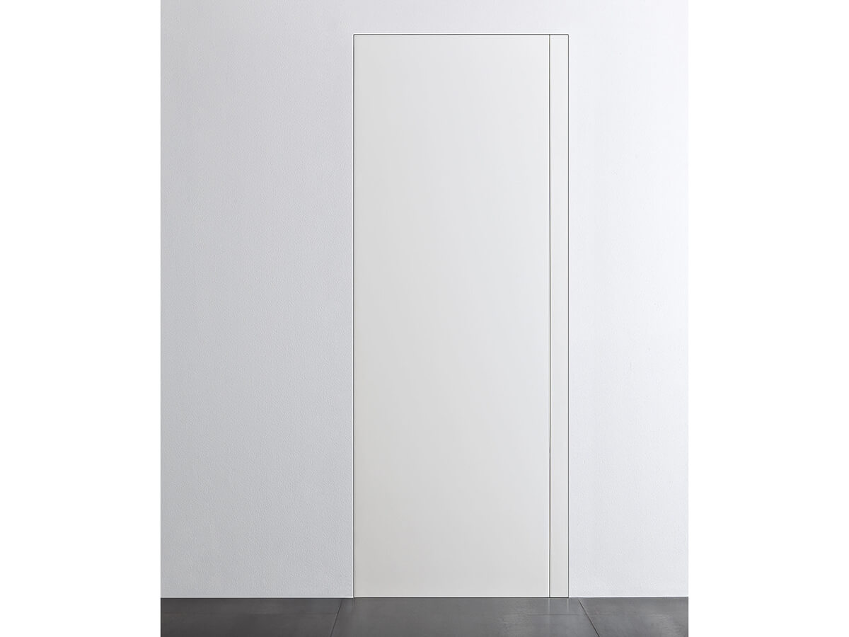 The Rasotouch 55s model by Lualdi is a real “invisible door”, conceived by the designers Cairoli & Donzelli as a pure architectural element that does not break the linearity of the wall at all. To achieve this, each element of the door is reduced to a minimum, even eliminating the handle: the door is opened through a thin vertical cut that is placed on one side of the door. Extremely elegant and minimalist, Rasotouch 55s is available in different colors and finishes, with matt or glossy lacquers. The door has a thickness of 55 mm and is made of wood with a honeycomb structure, while the anodized aluminum frame is mounted directly inside the wall without a false frame.