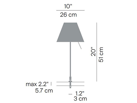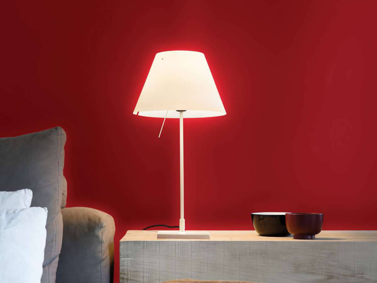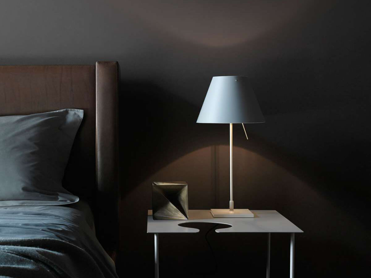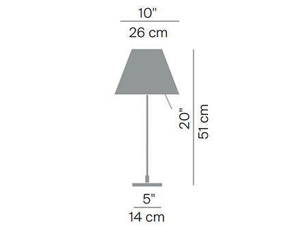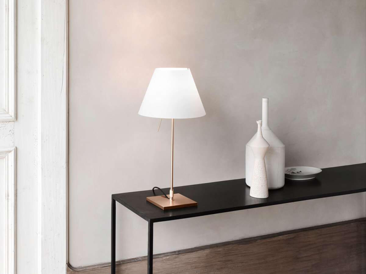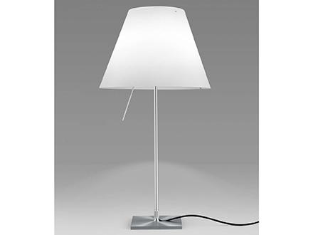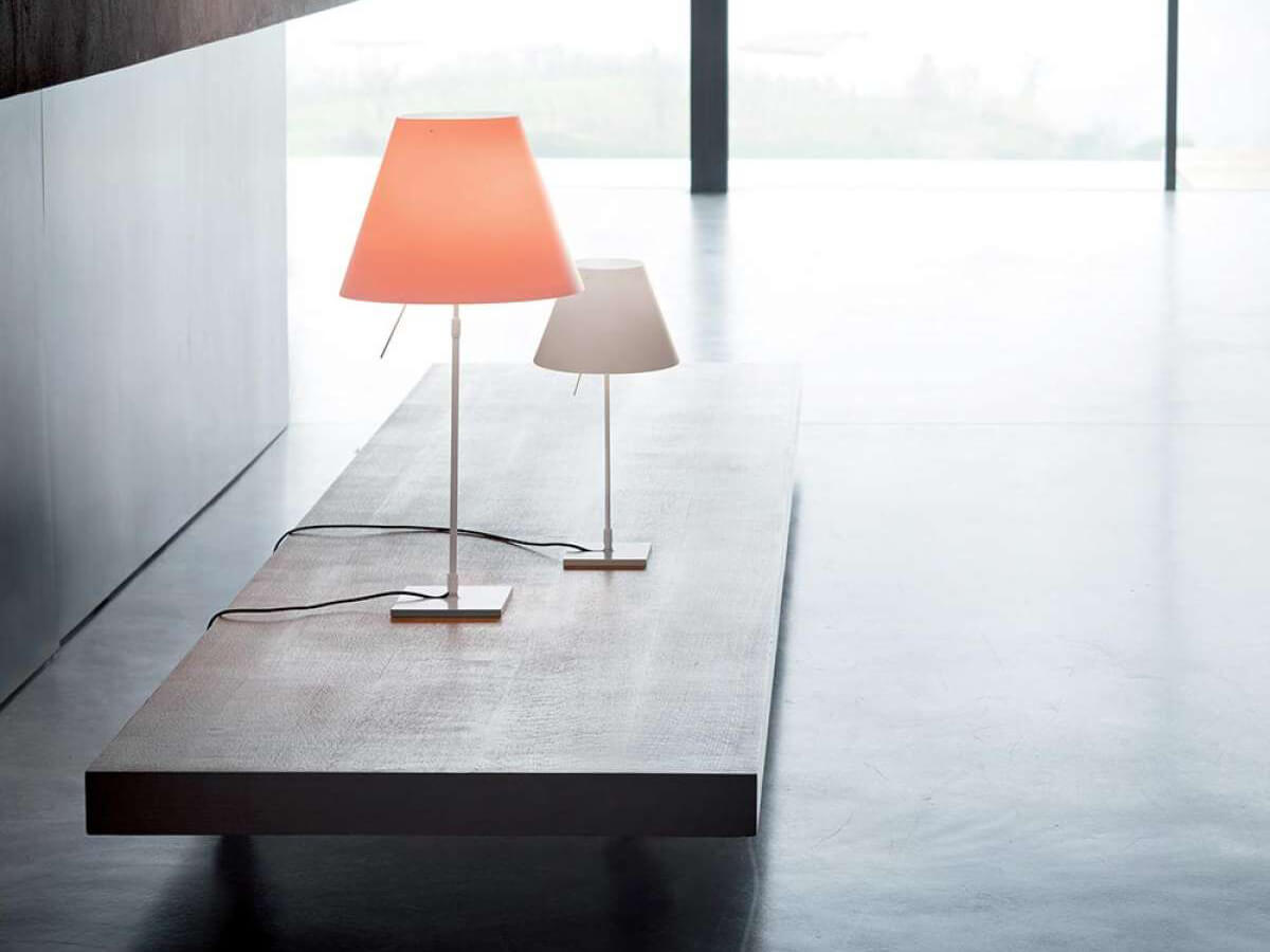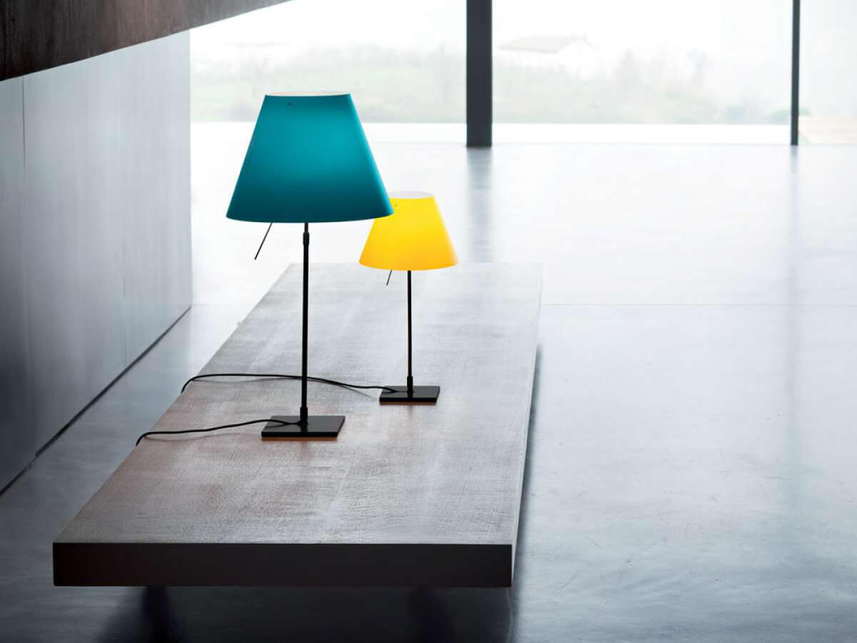 A lamp with a classic and timeless design, capable of satisfying the compositional needs of heterogeneous environments. Costanza presents that characteristic design of the more commonly thought “table lamp” or “bedside lamp”, with a conical diffuser and small stem to support the internal bulb. In short, a simple lamp that never fails to amaze. Costanza is available in different versions, including table and floor. The polycarbonate diffuser is supported by the aluminum structure on only two support points. Luceplan makes numerous colors and shades available to better reconcile customization. Technical features for the classic version: available with on / off switch or with sensory dimmer