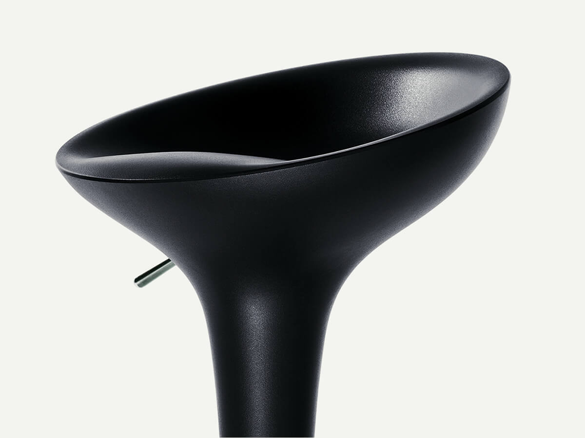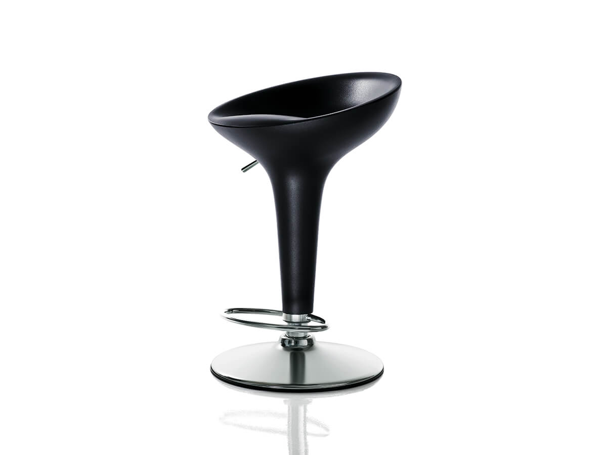 A stool that since 1997 seems to mark the pace of sector furnishings. An example of art and design merged into a single elegant and essential solution, without any excessive embellishment that would change its truest substance. Bombo is a swivel stool available in different versions including: adjustable in height with gas piston and adjustable to different heights (two standard). It consists of a chromed steel base on which the standard injection-molded ABS seat rests. Beautiful and practical, Bombo includes numerous colors that place it well in heterogeneous contexts. No less important is its practicality, ideal in dining areas and bars.