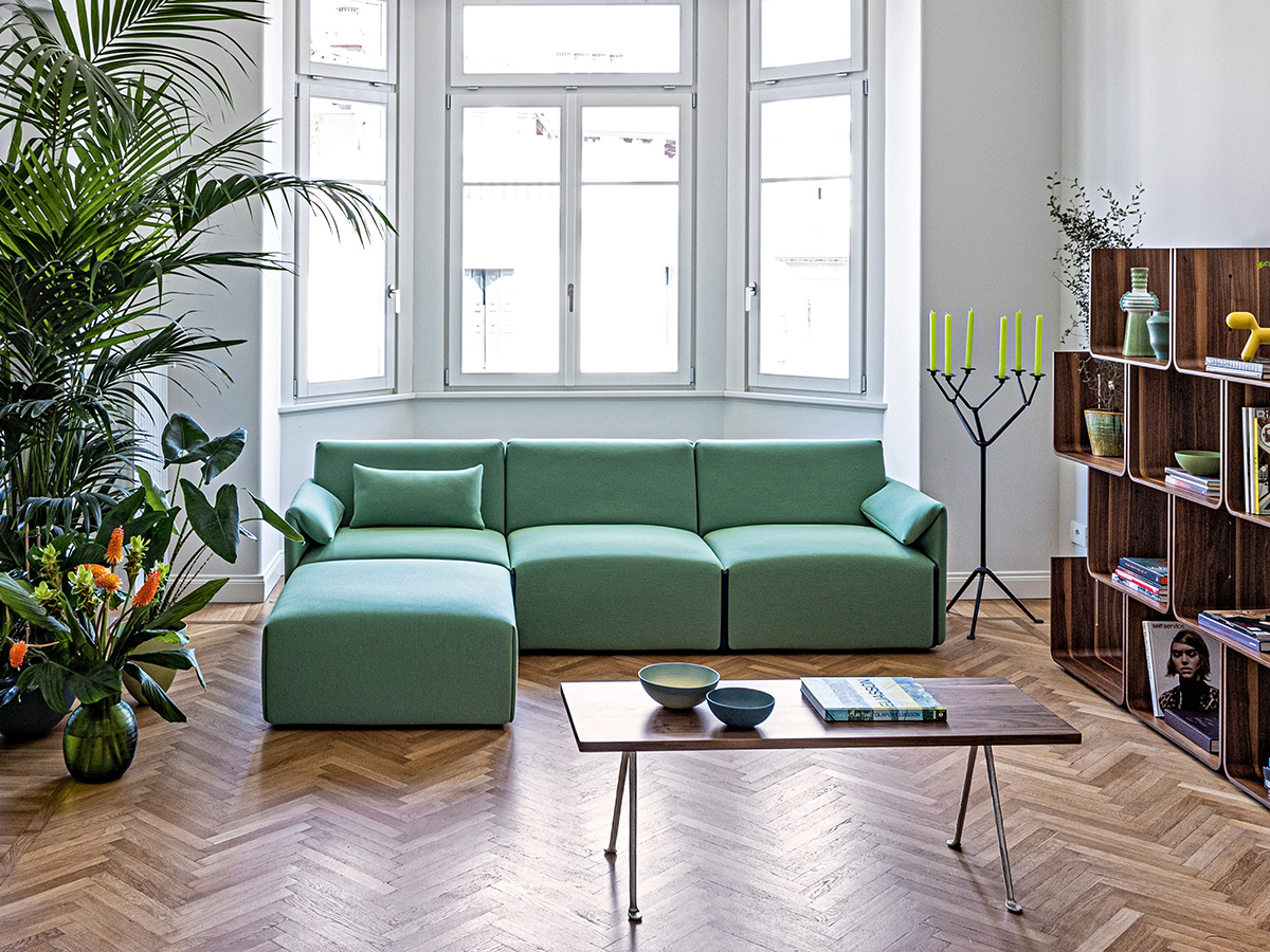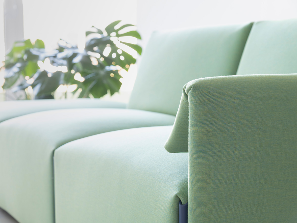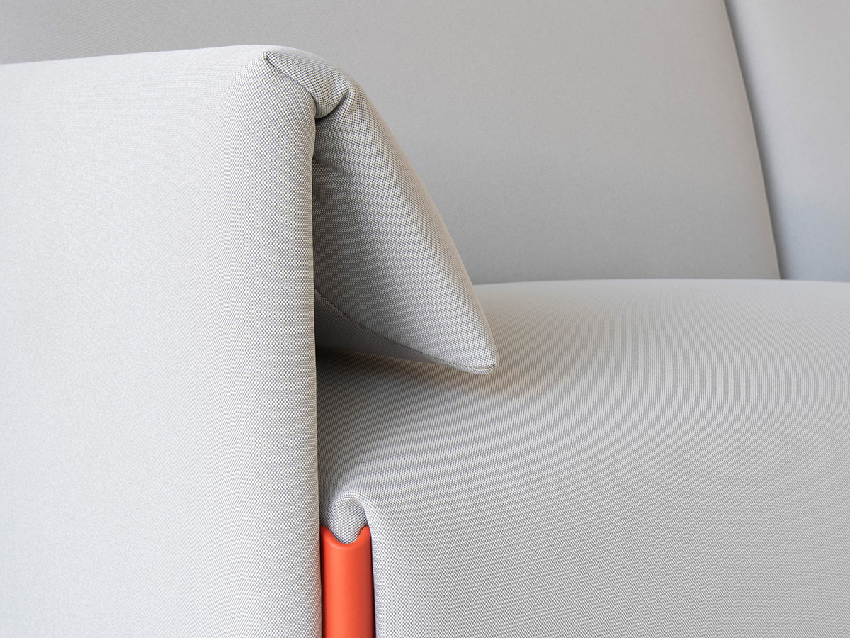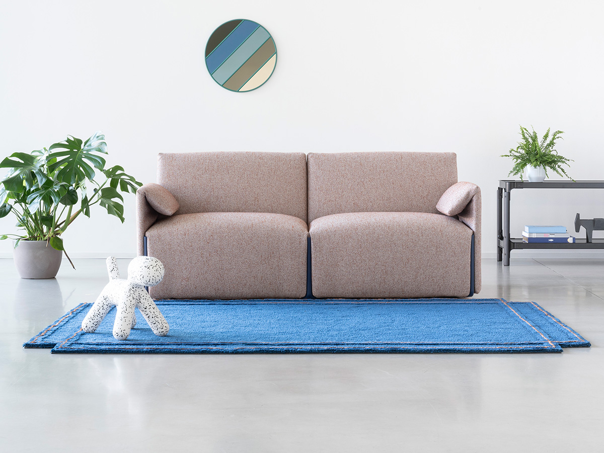 A modular sofa with essential and clear shapes, which fit well with contemporary taste and the typically modern home of the city. Costume has a structure made of recycled and recyclable polyethylene with a thickness of 4mm. The covering is available in different types of fabric to guarantee maximum compositional choice. Thanks to the elastic rings attached to the base, the sofa can be removed if necessary for washing or replaced over time. The modular system is made up of different units that can be freely positioned so as to create multifaceted and always new elements, perfect for any type of living or non-living context. The softness of the lines merges with a certain geometric rigor which instills security and makes possible the maximum freedom of expression.