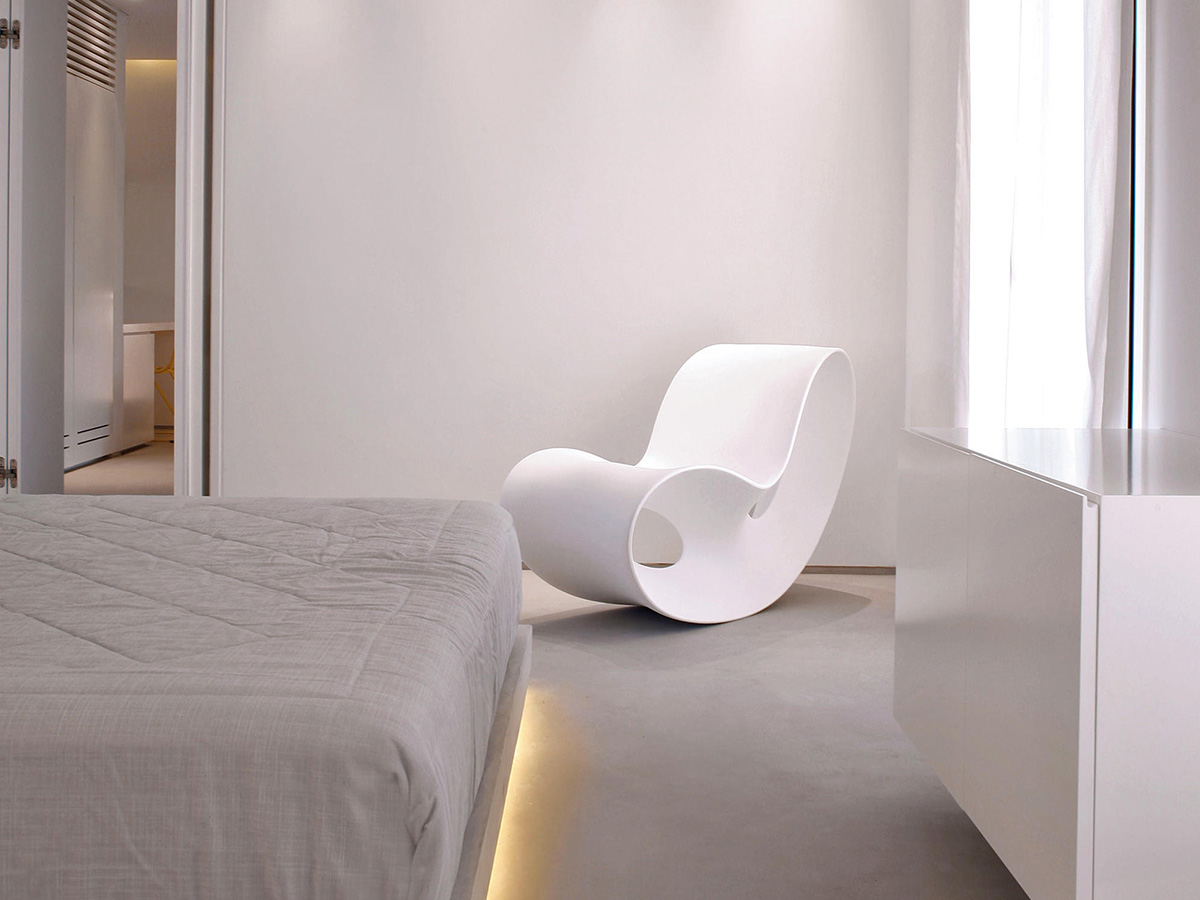 Comfortable and practical, with an unconventional design and capable of leaving room for anyone's imagination. Voido is a rocking armchair designed by Ron Arad in collaboration with Magis which stands out for its matt polyethylene finish, suitable for indoor and outdoor environments. The beauty of Voido lies in its extreme simplicity which actually hides a strong design and conceptual complexity. Its conformation makes it ideal for different types of environments, from the more to the less modern, giving each one a specific touch of out-of-the-ordinary personality.