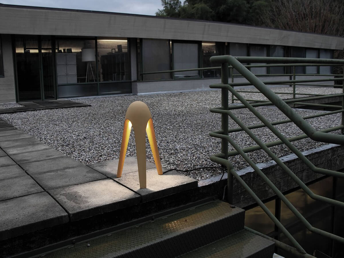 A lamp that has been able to embody the aesthetic sense of Martinelli Luce in furnishing the house with lamps and various lighting solutions suitable for a refined public with high quality standards. Cyborg is a lamp designed by Karim Rashid using a colorful and shiny texture that makes it instantly modern for the indoor version. In the outdoor version it is made of concrete to better resist the most difficult weather conditions, even in the case of particularly troublesome climates. The design is futuristic and surreal, looking like a small alien robot, elegant and delightful.