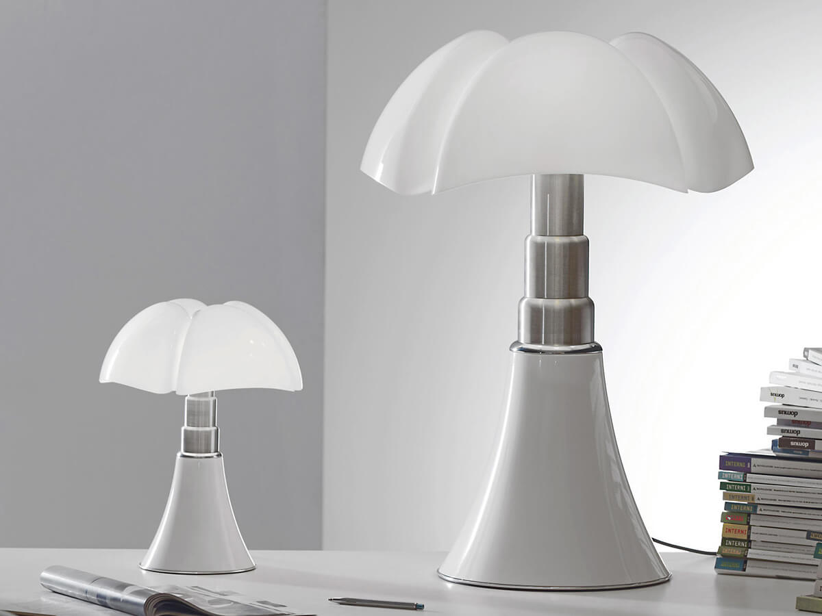 A lamp outside the box, beautiful not only for its function but above all for the unmistakable style and design that have marked its origin. Pipistrello is an elegant and unique lamp, designed to create anthropomorphic shapes that are well suited to the creative style of Martinelli Luce. It is available in the table or floor version with diffused light, adjustable in height. The telescope is in brushed stainless steel. The diffuser is in white opal methacrylate, supported by the base and knob in painted aluminum. Pipistrello can come in different colors and finishes, depending on the need and style of the surrounding furniture. In any capacity, however, it stands out for its conceptual and visual originality.