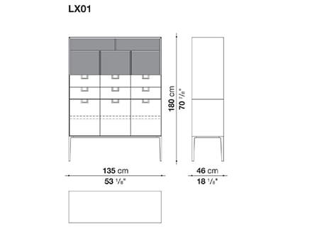 Version LX01 with n.03 Hinged Doors, n.06 Drawers and Open Units