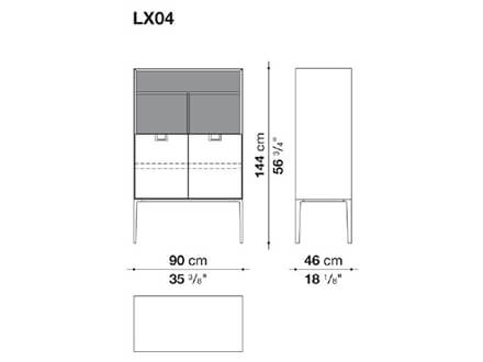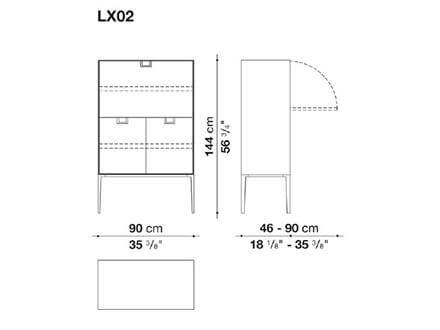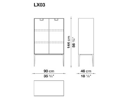 *Price valid for the classic vertical version cod. LX03 in W.90 x D.46 x H.144 cm with n.02 hinged doors - outer frame and supporting frame in shellac - inside in glossy red - handles in bronzed nickel (cod. LX03).