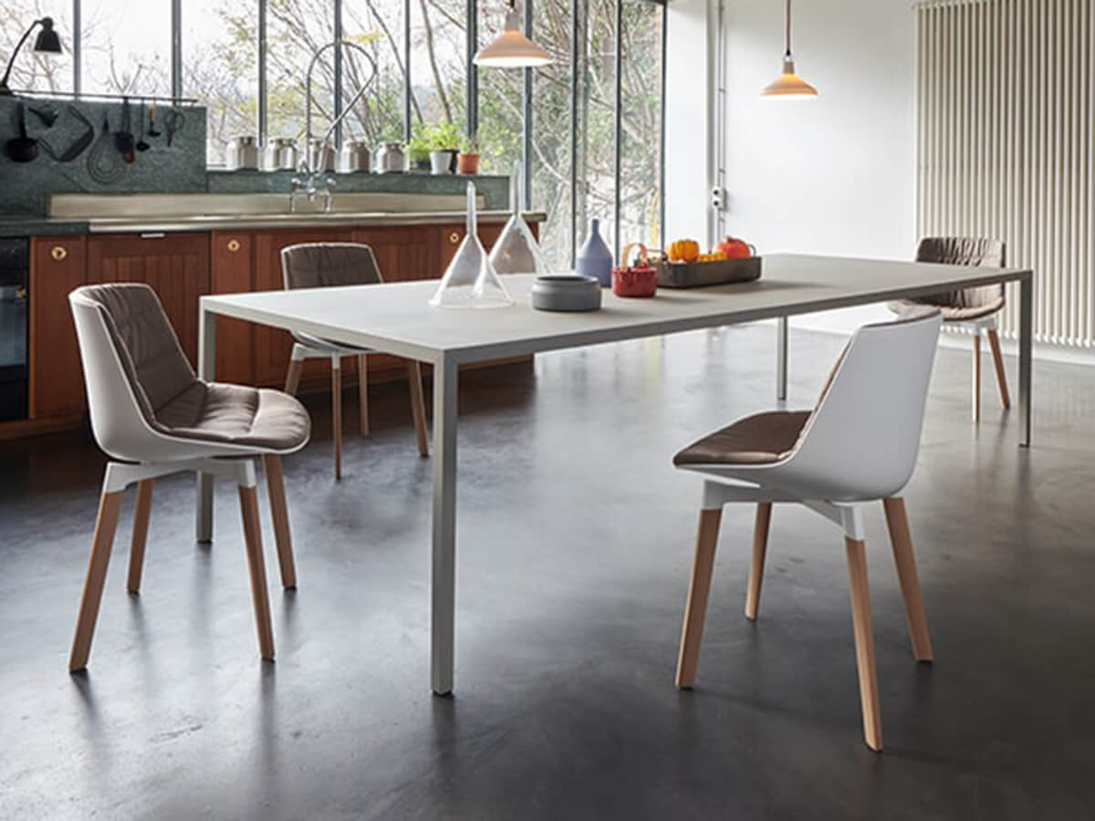 The Flow collection by Mdf was born from the creative genius of Jean Marie Massaud, an example of a timeless modernism capable of giving life to shapes and lines of incredible elegance and lightness. Flow Chair was born in 2009 as a versatile yet flexible product, a project where the curved line of the seat and the elegance of the profile dominate, united in perfect alchemy. Flow Chair has a range of finishes and numerous different bases to choose from to better blend with the surrounding style of furniture. It is also customizable and integrates into living rooms, dining spaces and more. Flow Chair can be completed with a leather counter-shell padding, or in the numerous MDF Italia fabrics.