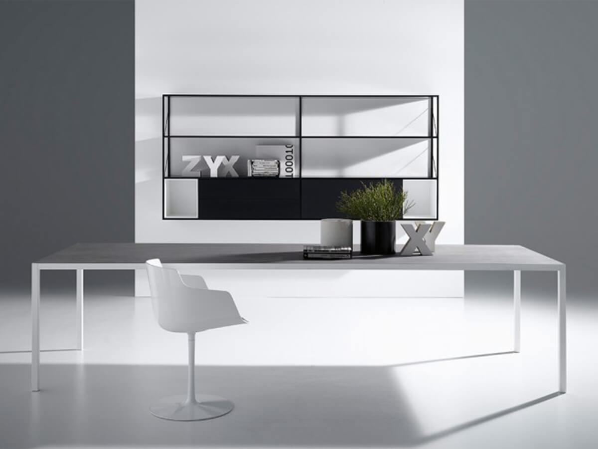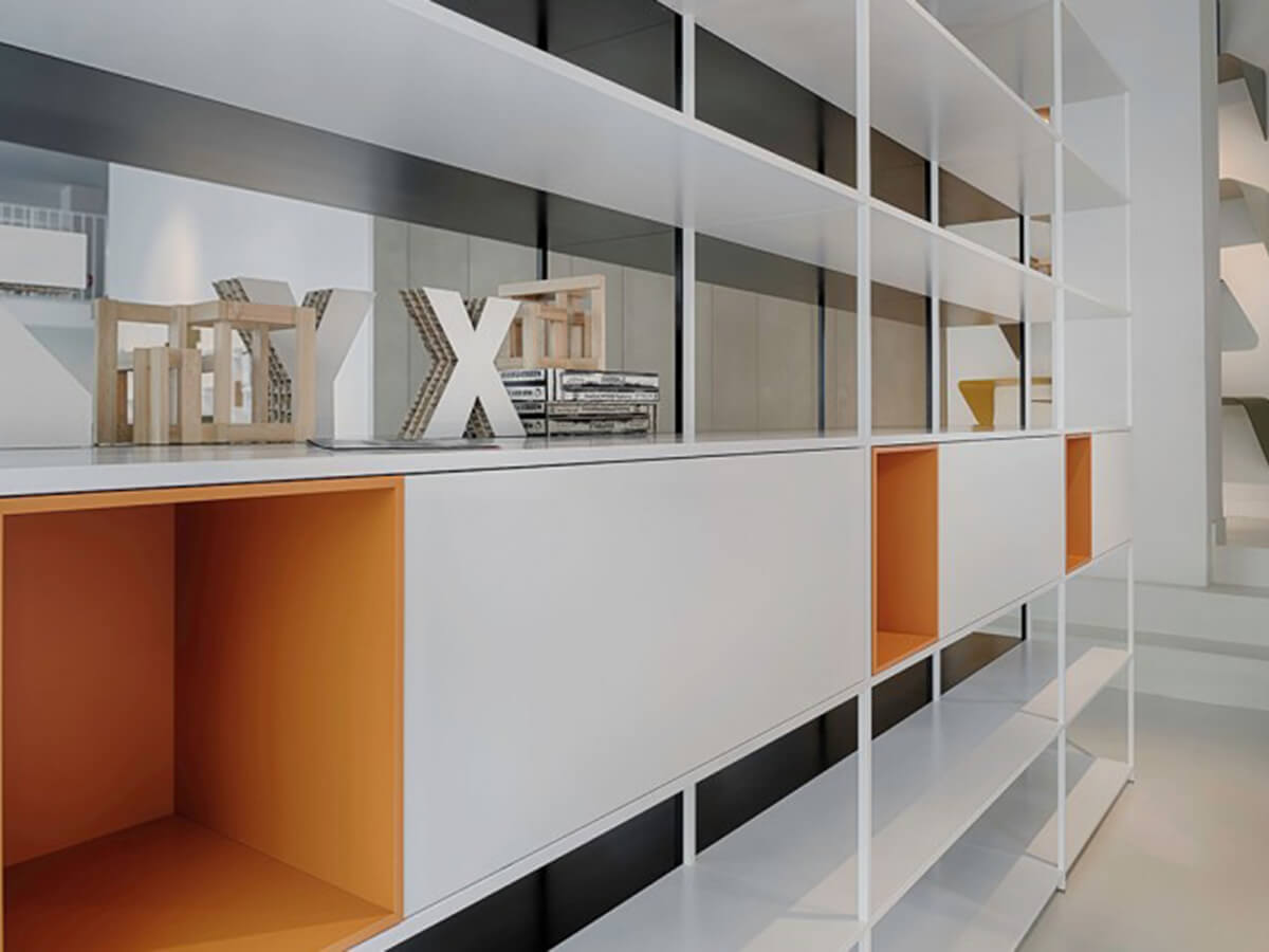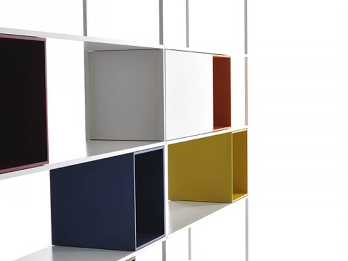The Minima 3.0 bookshelves by MDF Italia is the reworking of the historic Minima, one of the most famous icons of the brand, awarded with an Honorable Mention at the Compasso d'Oro in 1998. Designed by Bruno Fattorino's Metrica studio, it is a masterpiece of minimalism in which a thin structure supports equally slender shelves that can be customized with containers and drawers inside them. An entire system is grafted onto this rigorous and essential concept that allows you to configure Minima 3.0 with the functions of a classic bookcase, wall unit, partition between different environments and even rework it as a simple sideboard.