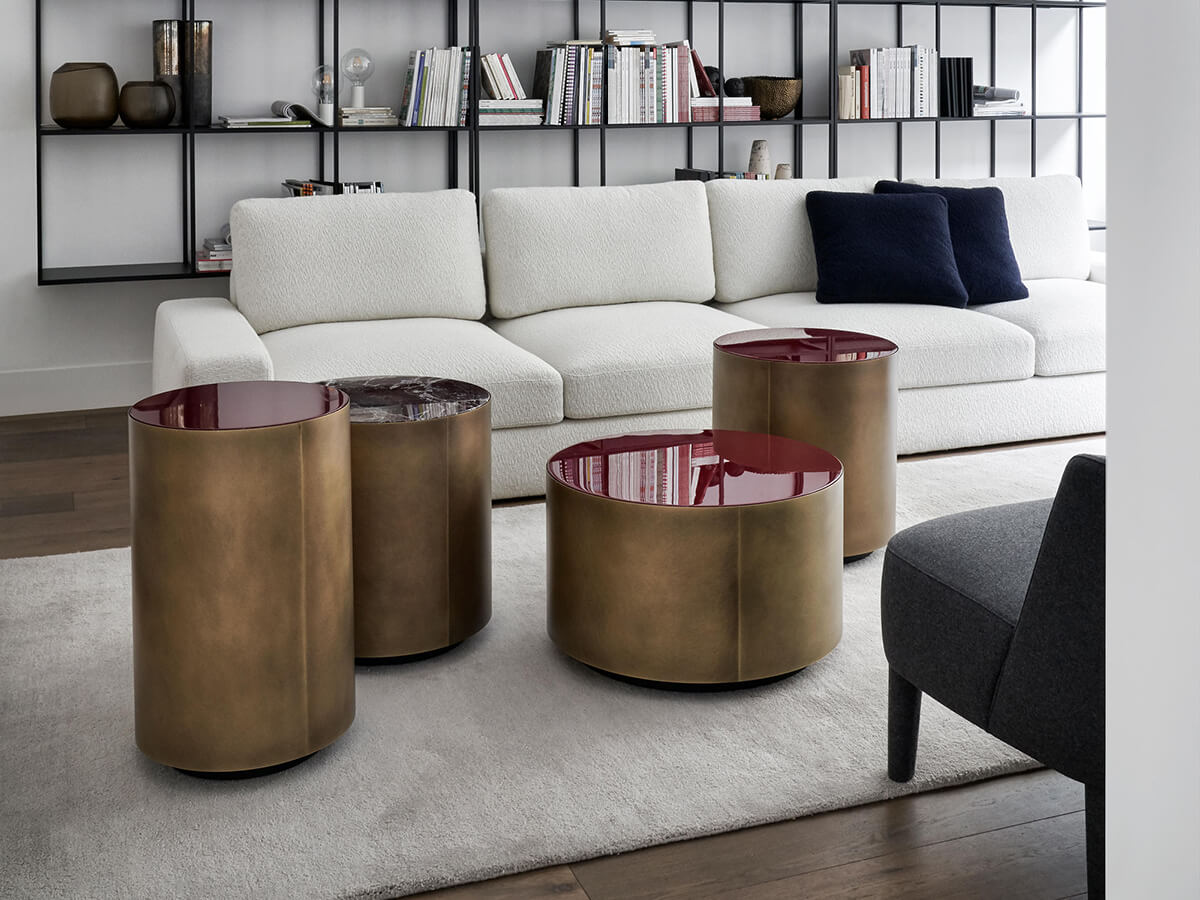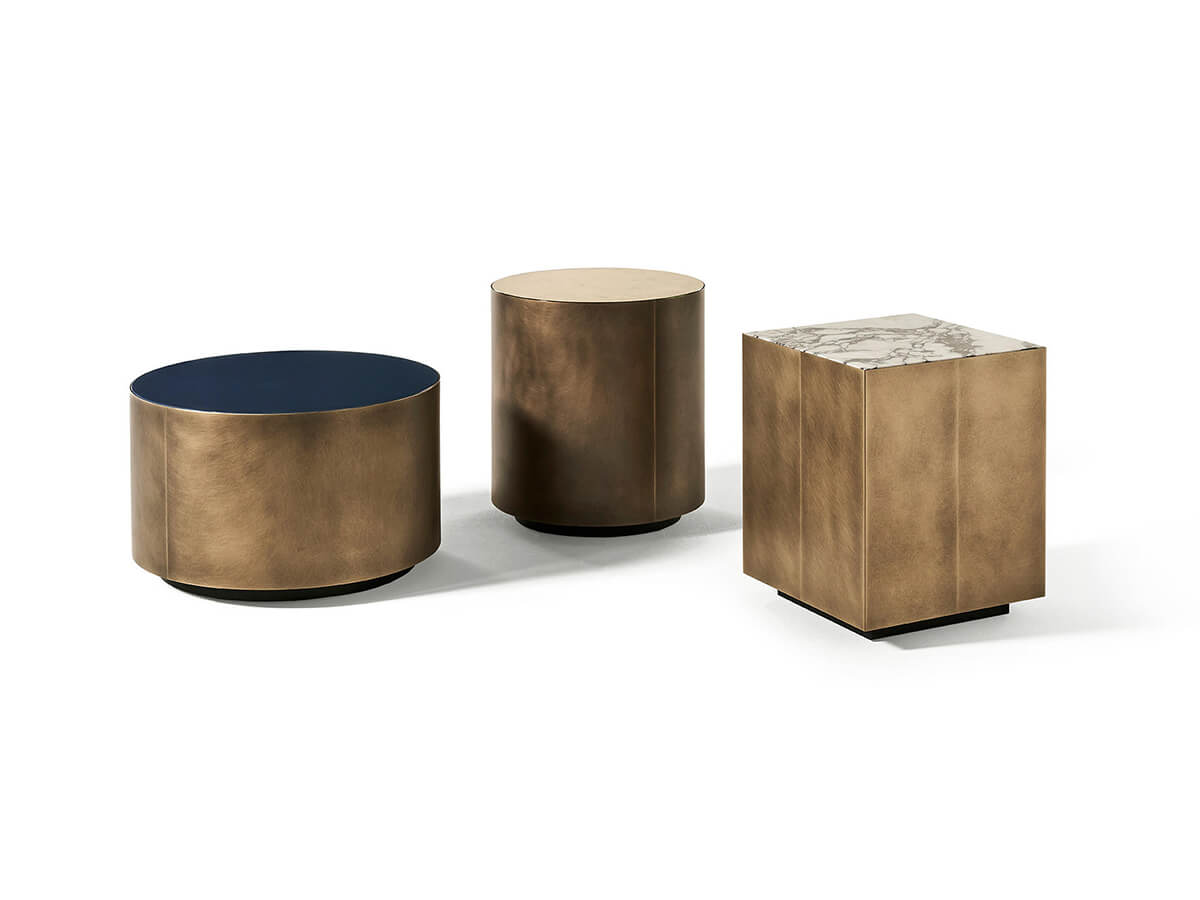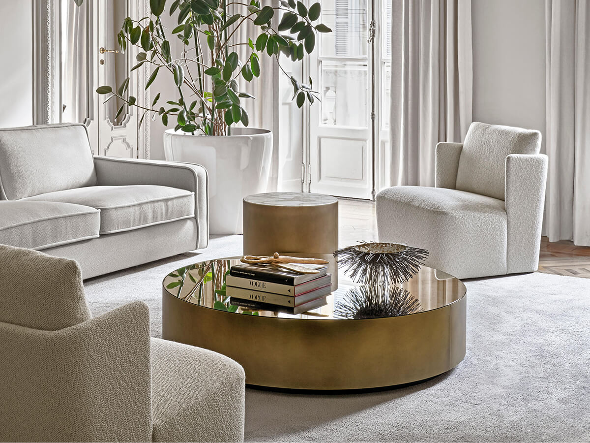 An example of essential design, capable of extrapolating its maximum and best expression from the material. Belt expresses geometric perfection in addition to the aesthetic key of the coffee table. The collection is available in different sizes for each shape. Belt is made with the perimeter band in the precious handcrafted finishes of bronzed brass or platinized steel, with tops that have various finishes including glass, mirror, lacquer or even marble. The Mirror version is particularly pleasant as it is coated with reflective mirror surfaces that enhance its surreal potential. An object that lends itself to different applications, finding a place in many rooms of the house.