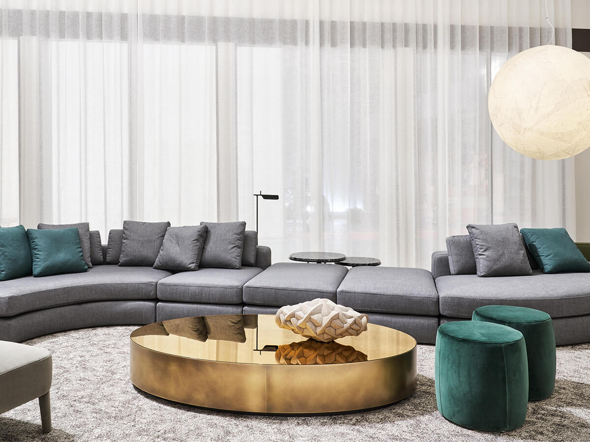 The stylistic signature of Meridiani is characterized by a timeless elegance, neither fully classical nor completely modern, luxurious and sober at the same time. One of the strengths of the brand is the extremely rich variety of precious fabrics available for the collections, which allow sofas, beds and chairs to take on an ever-changing and fashionable appearance. These are combined with a vast range of leathers and hide leathers and precious materials such as marble, wood and lacquering to create tastefully decorated environments down to the smallest detail, always in the sign of the most rigorous Made in Italy.Read more