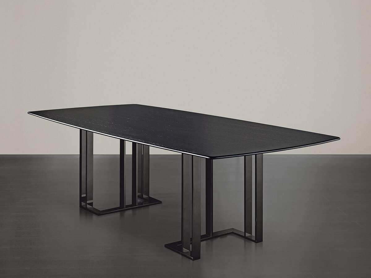 Charlie is part of a collection that includes numerous tables with square, round or rectangular tops of different sizes to better adapt to different contexts of the house. Charlie's sophisticated and urban look guarantees its international success. The precious base also contributes to enriching the figure, making it exceptional in sophisticated environments where you want to create a focal point. The very wide possibility of customization is also possible thanks to the numerous finishes of the tops, which can be used to create an authentic "human-sized" object. The lightness expressed by Charlie makes it interesting also in contract areas.