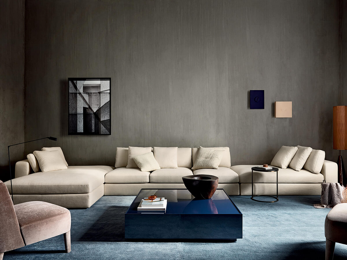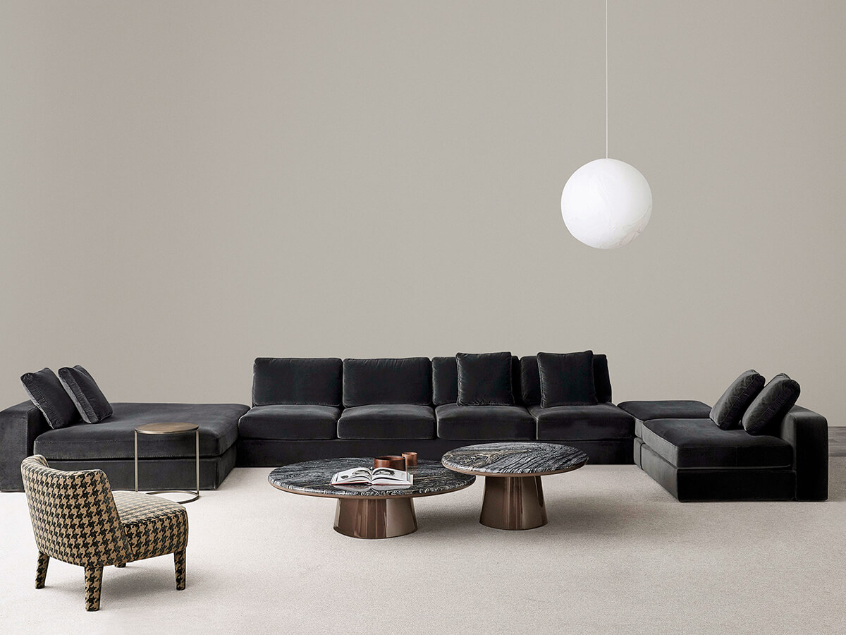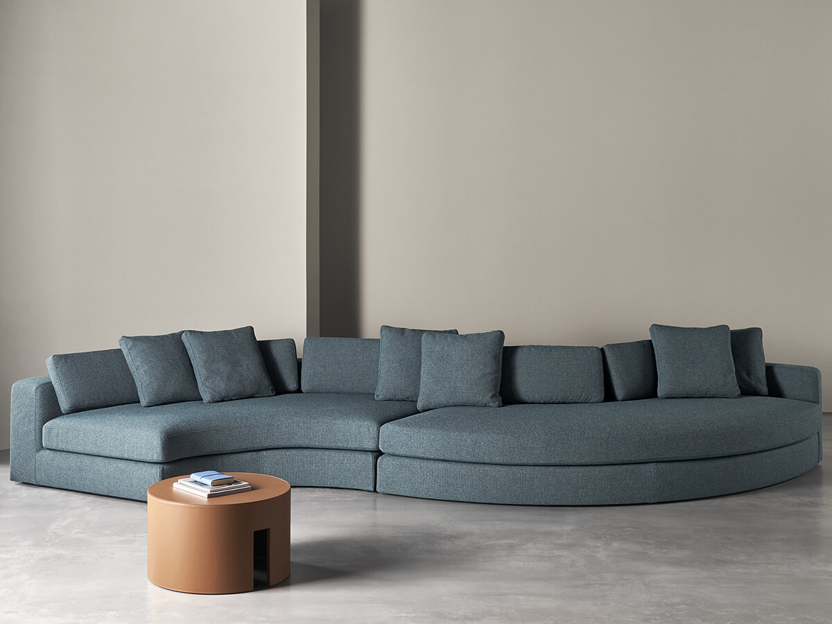 Harold consists of an extremely versatile set of seats, ideal for those who love to spend their time at home enjoying well-deserved moments of relaxation. It consists of different versions including linear, modular, curved or asymmetrical sofas and even more as the possible configurations have imagination, taste and necessity as their only limit. Harold's volumes are generous and softened by the slight rounding, while the stitching detail on the structures and cushions emphasizes the clear-cut proportions desired by Meridiani. The collection is also available in the version with supersoft padding. The many possibilities of customization are interesting depending on the desired depths or the desired armrests.