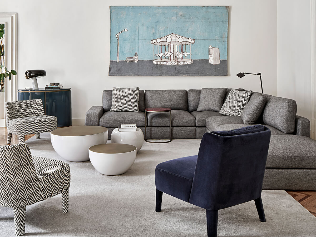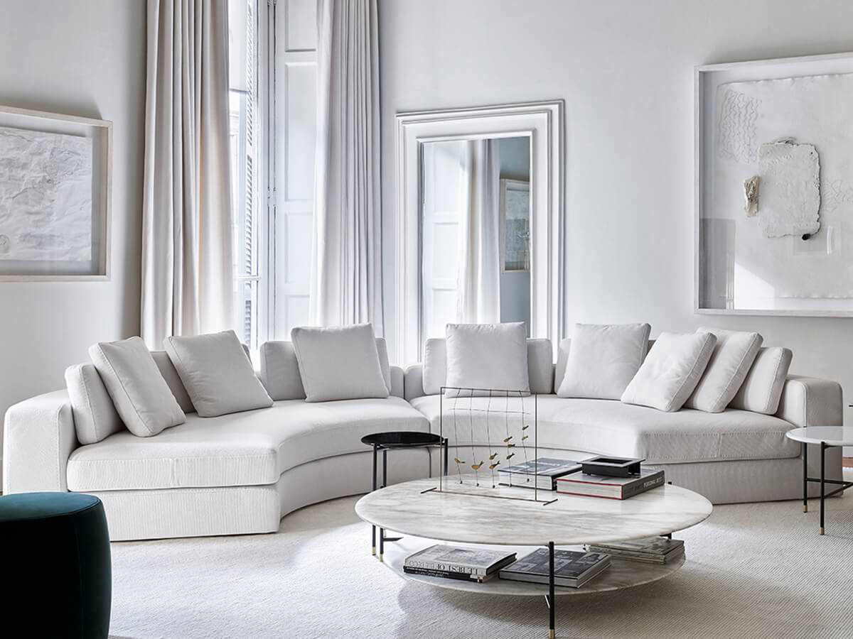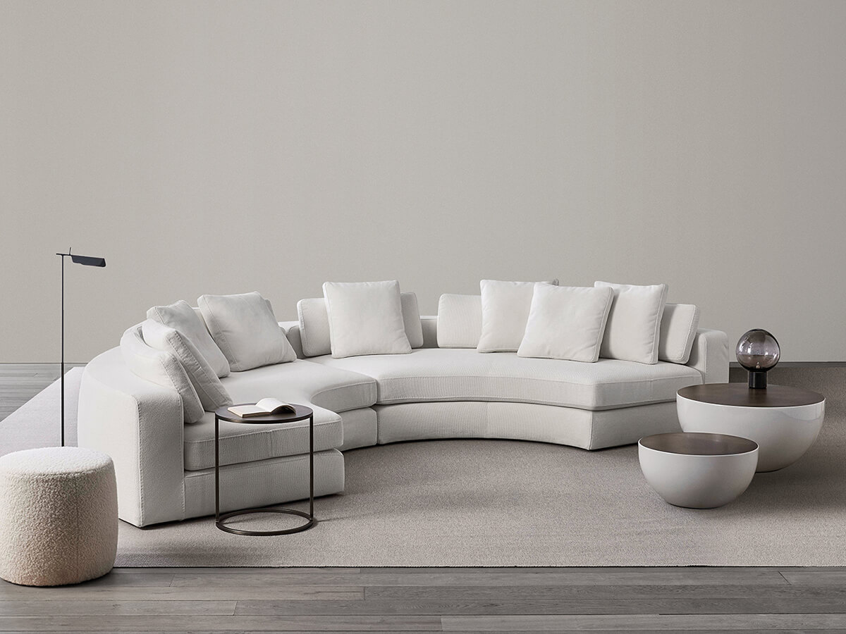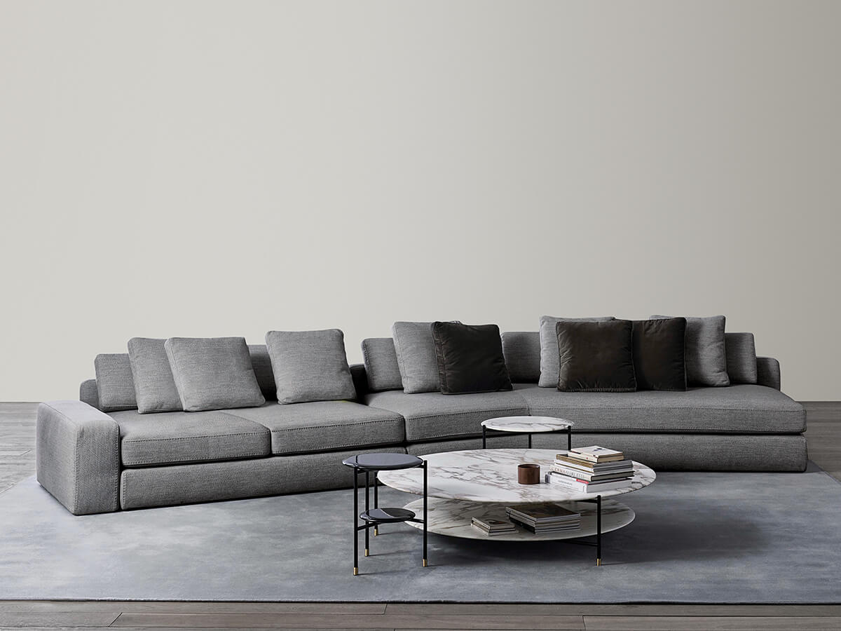 Harold consists of an extremely versatile set of seats, ideal for those who love to spend their time at home enjoying well-deserved moments of relaxation. It consists of different versions including linear, modular, curved or asymmetrical sofas and even more as the possible configurations have imagination, taste and necessity as their only limit. Harold's volumes are generous and softened by the slight rounding, while the stitching detail on the structures and cushions emphasizes the clear-cut proportions desired by Meridiani. The collection is also available in the version with supersoft padding. The many possibilities of customization are interesting depending on the desired depths or the desired armrests.