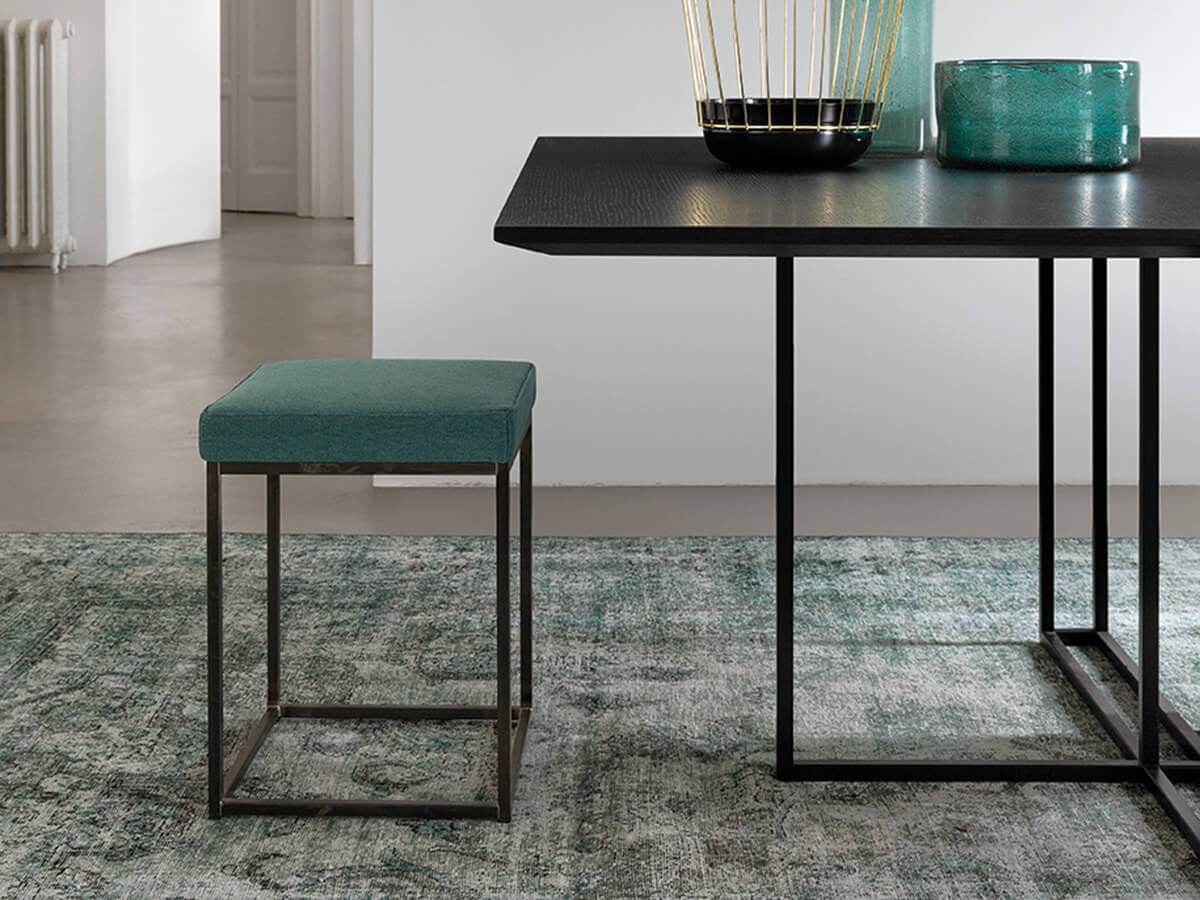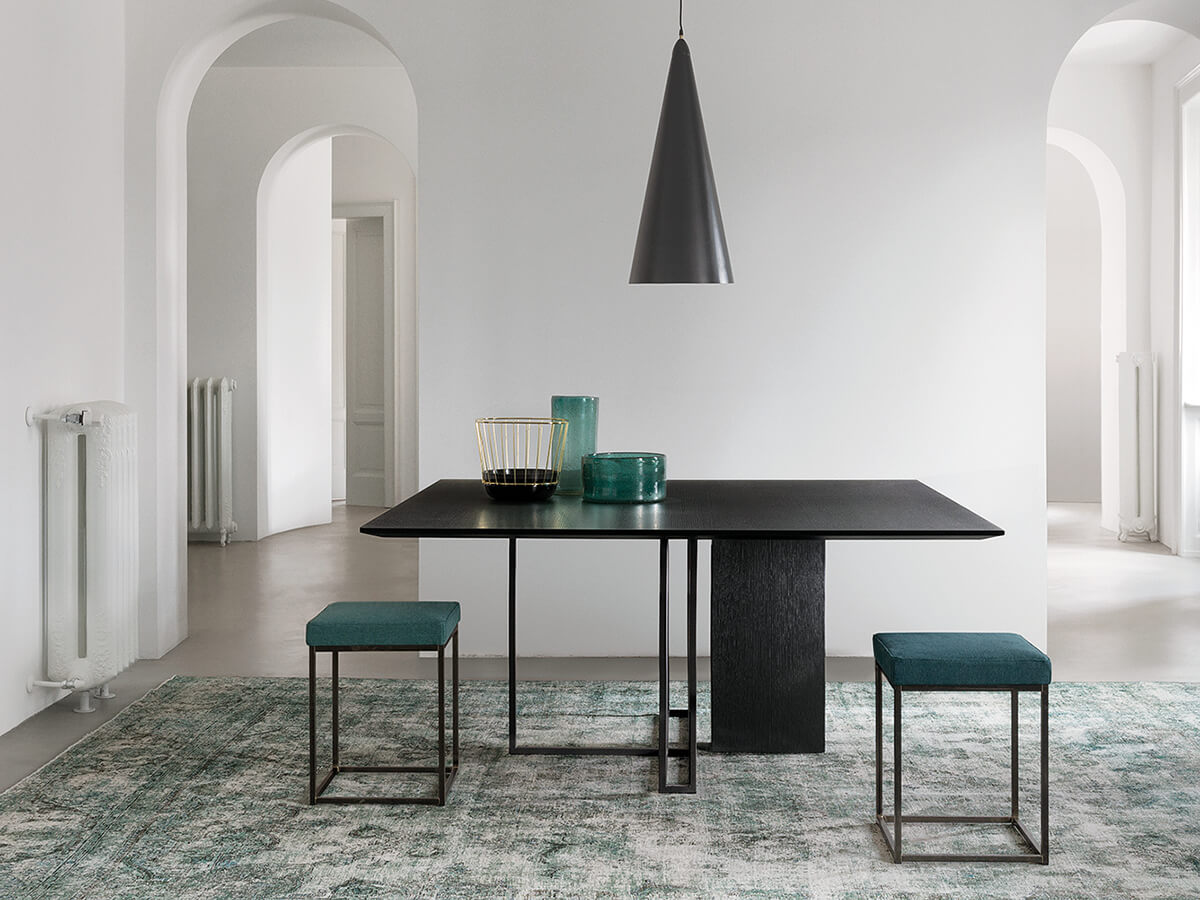 From the Latin "plinthus", a collection of tables that refers to stability and planning, as strong as the column to which it refers. Plinto is a sculptural table divided into three main elements. The monolithic base, the light structure and a solid top above. Each part is available in numerous shapes and materials to create countless configurations. Plinto's elegance and beauty make it an ideal element for heterogeneous environments, where a sophisticated tip is required. Technical features for all versions: metal parts of the base available in black painted, bronzed brass or platinized steel painted finish; Biscuit version: top with rounded edges