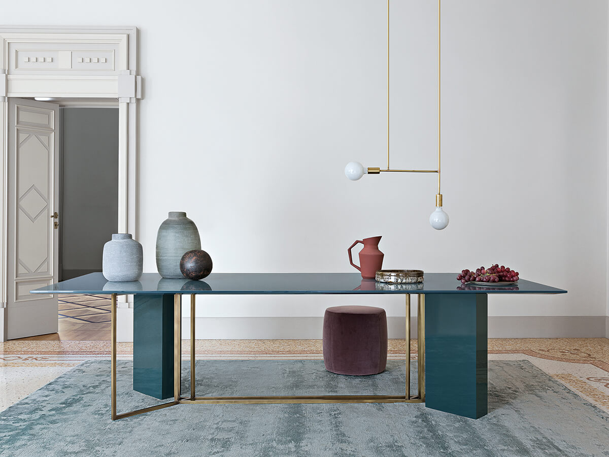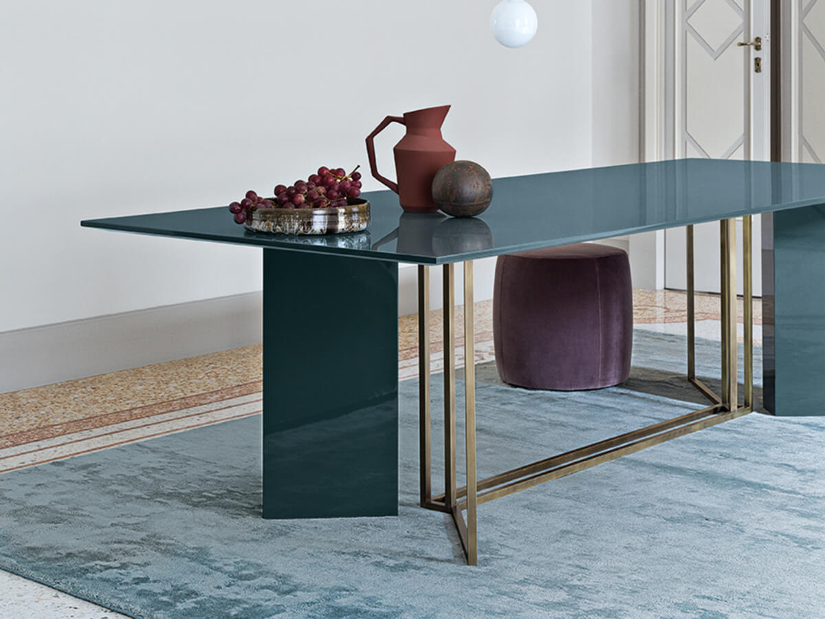 From the Latin "plinthus", a collection of tables that refers to stability and planning, as strong as the column to which it refers. Plinto is a sculptural table divided into three main elements. The monolithic base, the light structure and a solid top above. Each part is available in numerous shapes and materials to create countless configurations. Plinto's elegance and beauty make it an ideal element for heterogeneous environments, where a sophisticated tip is required. Technical features for all versions: metal parts of the base available in black painted, bronzed brass or platinized steel painted finish; Biscuit version: top with rounded edges