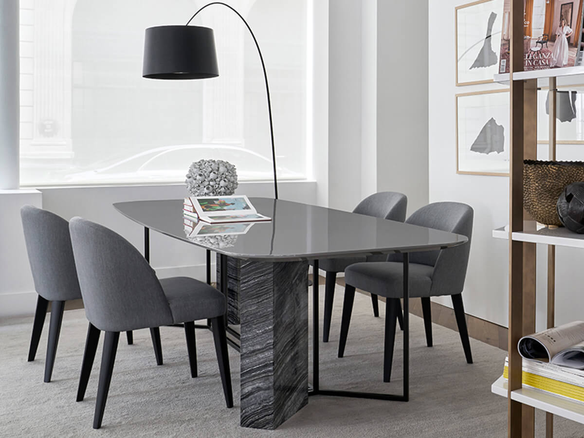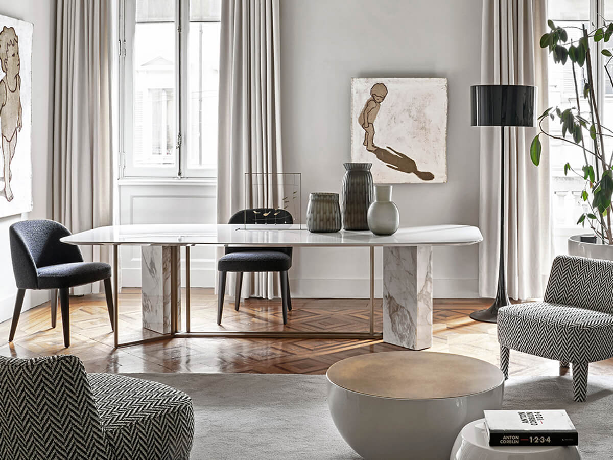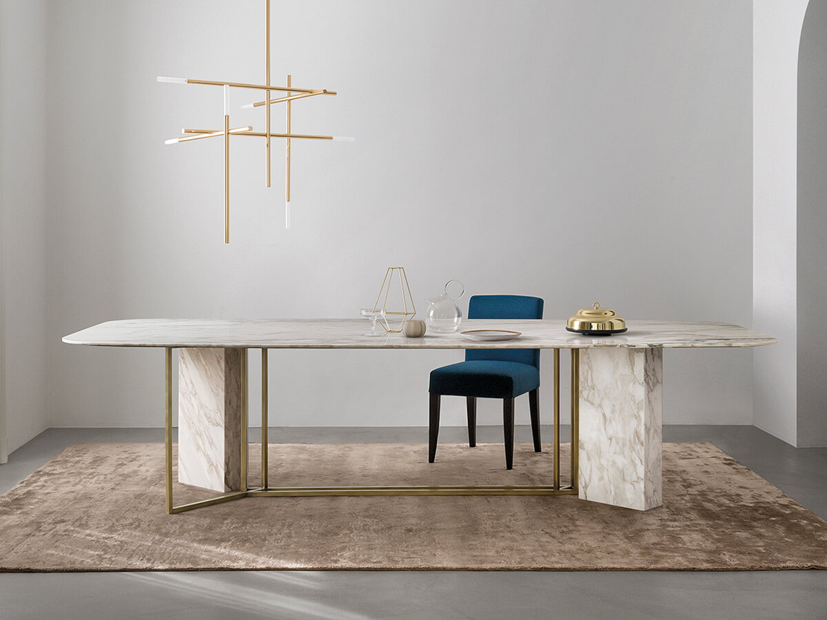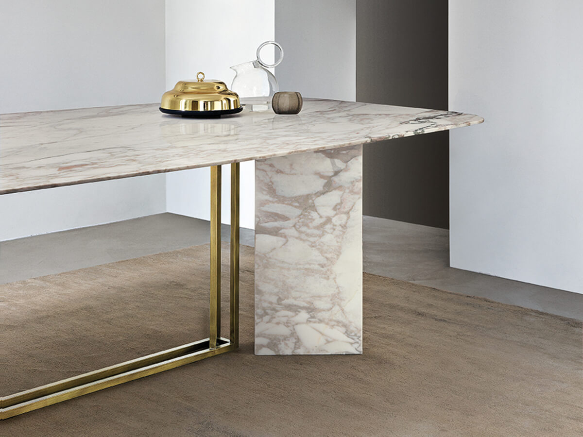 From the Latin "plinthus", a collection of tables that refers to stability and planning, as strong as the column to which it refers. Plinto is a sculptural table divided into three main elements. The monolithic base, the light structure and a solid top above. Each part is available in numerous shapes and materials to create countless configurations. Plinto's elegance and beauty make it an ideal element for heterogeneous environments, where a sophisticated tip is required. Technical features for all versions: metal parts of the base available in black painted, bronzed brass or platinized steel painted finish; Biscuit version: top with rounded edges