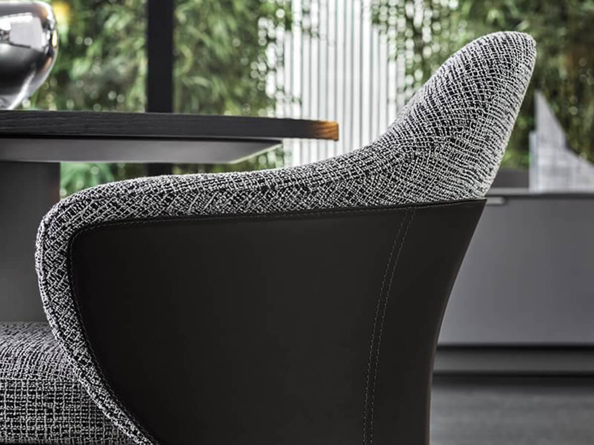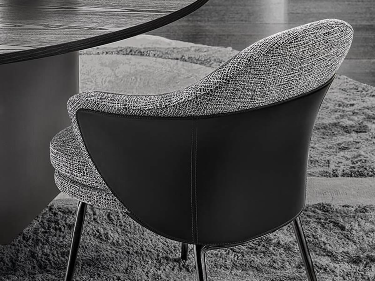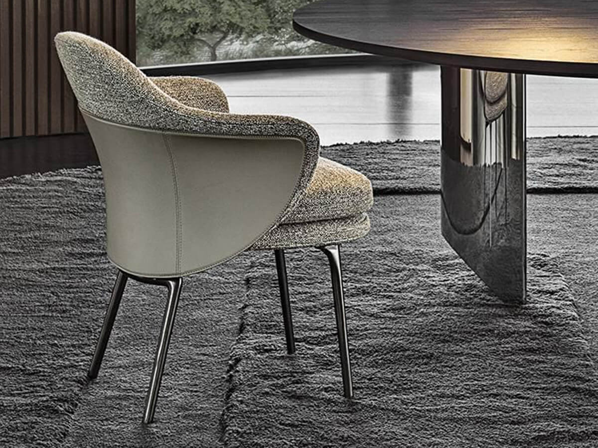 The Angie Dining chair is defined by its extremely simple and dry design, yet capable of expressing in its essentiality a way of furnishing based precisely on the balance of aesthetics, planning and function. The Gamfratesi studio designs this element by defining a large wing that completely embraces the structure, becoming both a backrest and armrests. Inside, a soft padding with differentiated foams welcomes the leather or leather bustier made from two different Baydur® molds. The supports on the ground are in die-cast aluminum, ideal for accentuating the contrast with the abundant upper seat. In addition to the chairs, the Angie line consists of armchairs with footrests and a dining armchair.