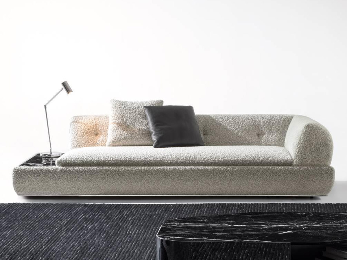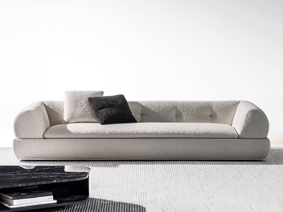 A compact and sculptural sofa, which seems able to combine comfort and modernity in a solution of continuous and expertly articulated lines to create the illusion of compactness, elegance, conformity. Supermoon is an upholstered piece born from the collaboration between Giampiero Tagliaferri and Minotti, a duo that has been able to create an out of the ordinary design, characterized by backrests and armrests poetically attributable to lunar phases. The shapes of each element are intended to recall geometries and more stylistic references, creating a dialogue between fabric, structure, padding and more. The details of Supermoon are equally precious and contribute to creating an exceptional proposal for the living area, as always an emblem of the company's artisanal quality.