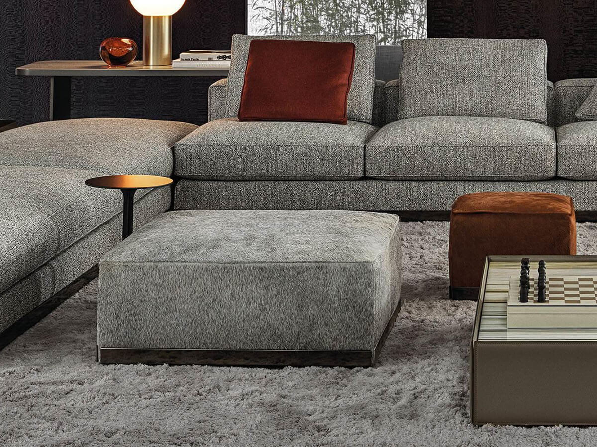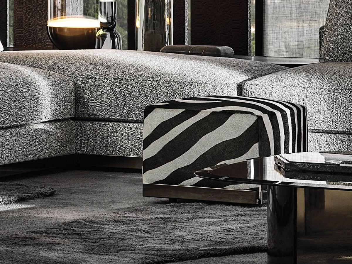 Geometries and stylistic wisdom configure the West seating system, emblem of a cubist design rich in surprising facets. In addition to offering multiple compositional possibilities, West does not neglect the organic interaction with external furnishing elements such as the Side tables, whose leather structure refers to that of the backrest, and the Clive consoles, capable of creating a play of surfaces even in overlap. The West collection is completed by the precious ottomans also characterized by the aluminum band which gives them a touch of elegance as well as being extremely homogeneous with the other Minotti proposals. Ideal complement for the living area, they give a touch of personality to the company's masterful compositions.