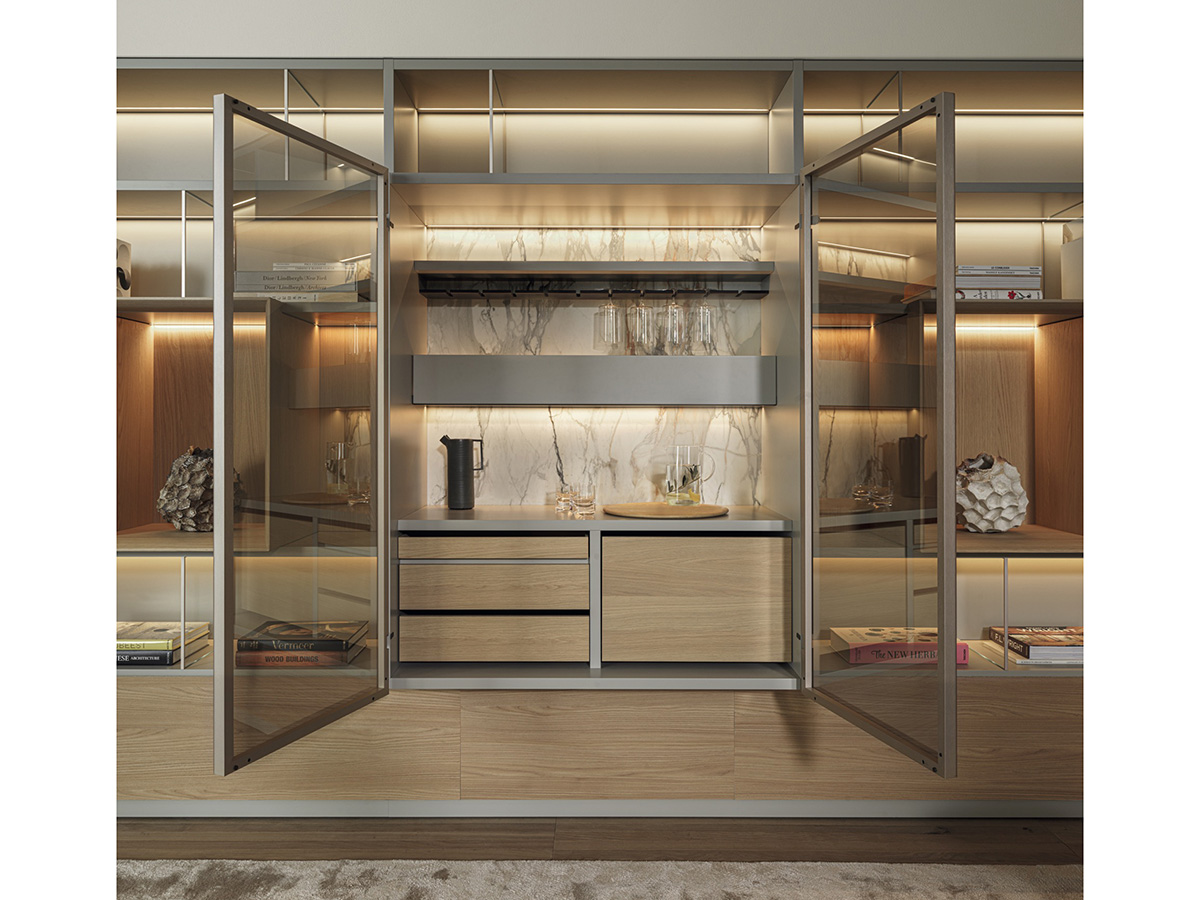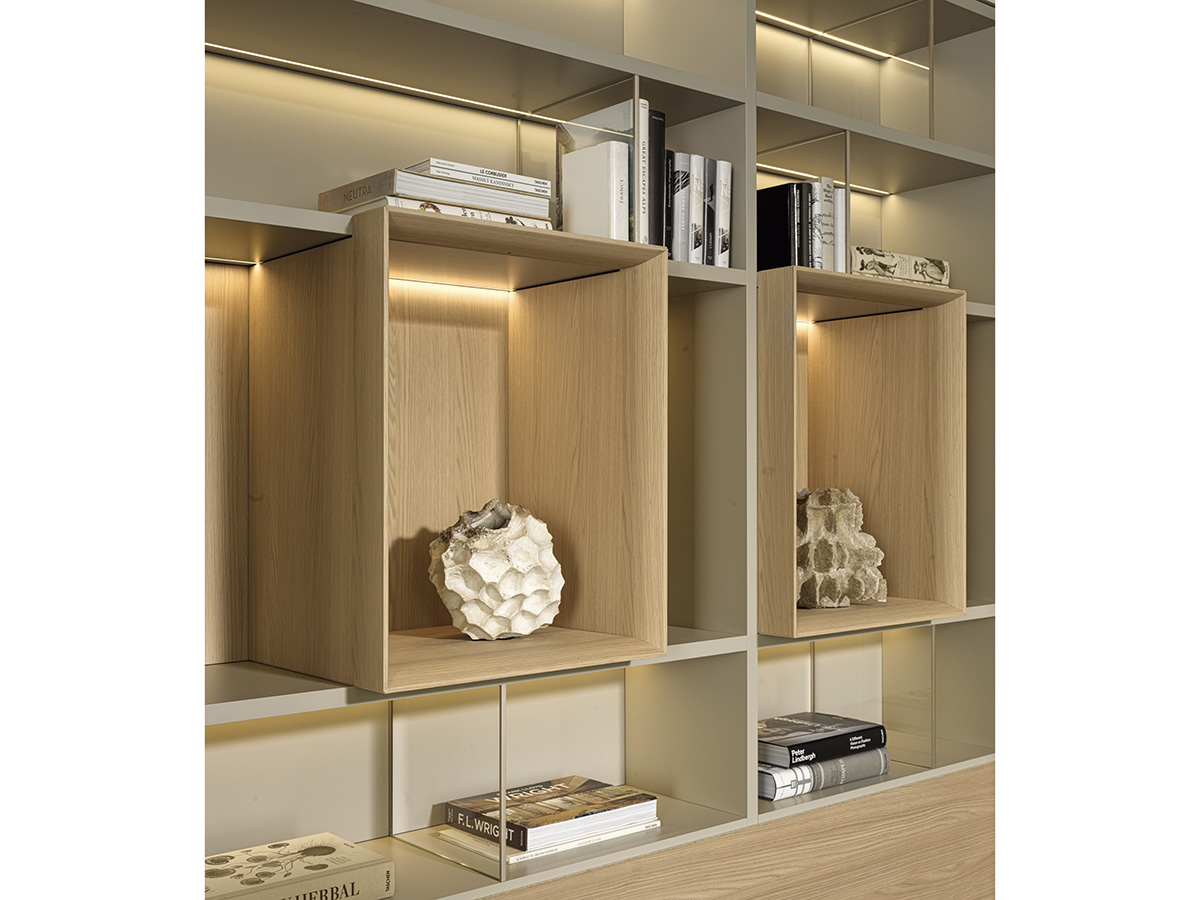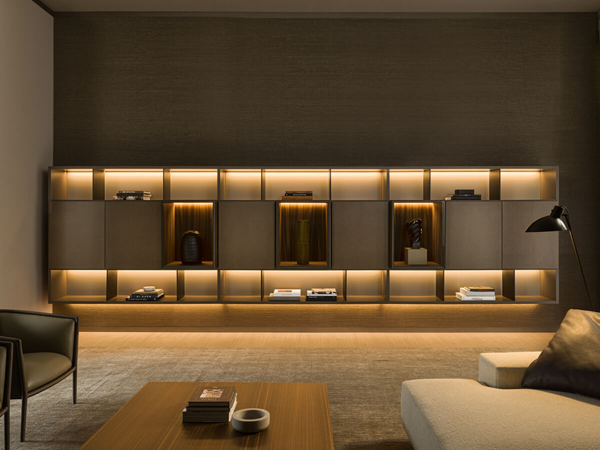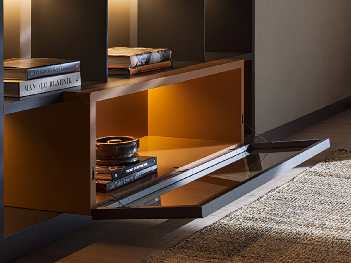 505 Up is the evolution of the classic modular system 505 by Molteni & C. Like its predecessor, it maintains an extreme compositional flexibility that allows it to take on the role of a TV unit, bookshelves or even sideboard placed on the floor, depending on the case. customized compositions thanks to the numerous modular solutions available in the price list. Among the great innovations introduced by 505 Up are the protruding Display storage units, which allow the creation of more captivating and dynamic TV units thanks to the introduction of projecting showcase elements, thus escaping the monotony of the classic "grid" of shelves.