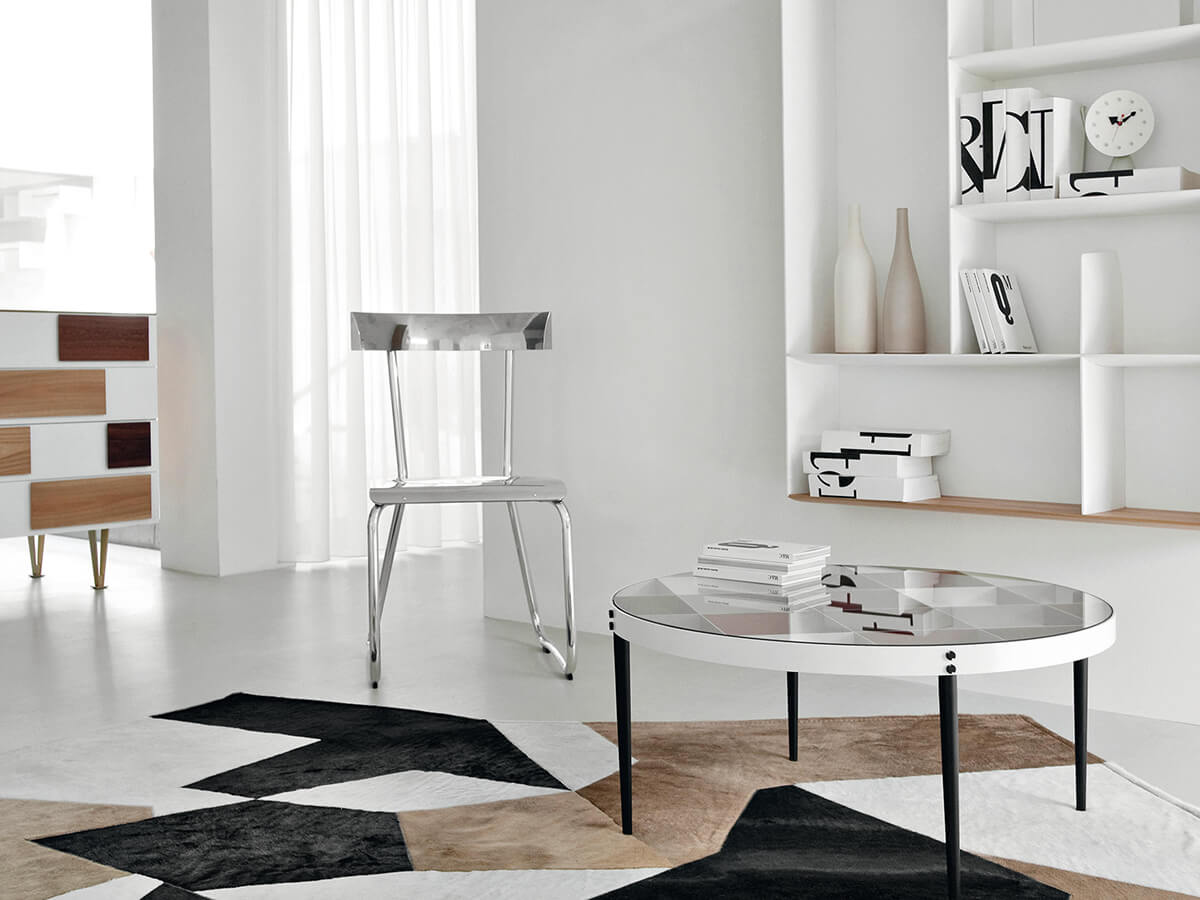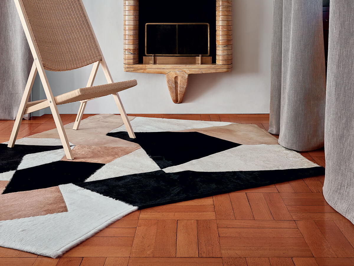 An indispensable piece of furniture for any environment, capable of giving personality and new shades to the floors and corners of the house. D.754.1 is a carpet made of pony skin in multiple colors, and originally designed in 1954 for the Gio Ponti Collection. The design it boasts is peculiar, original and capable of changing shape depending on the perspective from which you look at it. Ideal for elegant environments, however, it lends itself to more diversified situations where an out-of-the-ordinary trait of originality and personality is required.