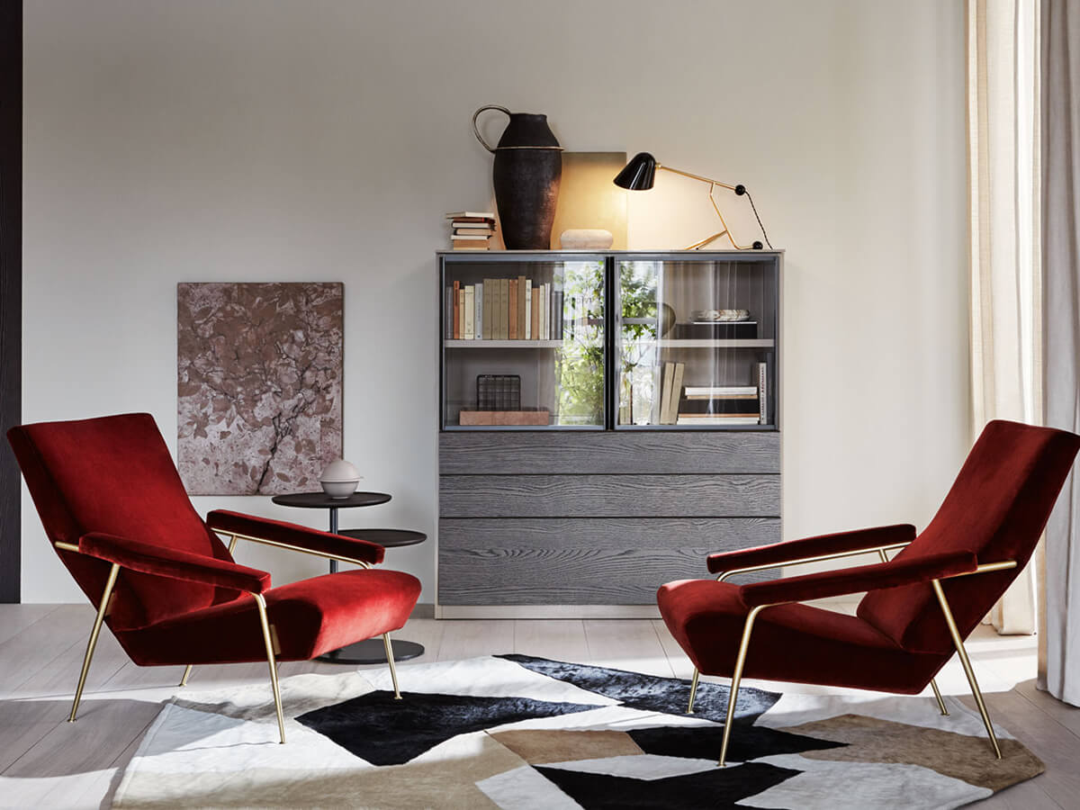 Gio Ponti (1891-1979) is considered the great “noble father” of Italian design. Milanese since his birth, one of the greatest architects of the twentieth century, he has conceptualized for his whole life a peculiar Italian way to modernity, in which the rich artisan and decorative tradition was not overcome, but enhanced and integrated at best with the most recent trends. Among his most famous works, the Pirelli skyscraper in Milan, a technical prodigy and at the time the tallest building in Italy, and Palazzo Montecatini. His theoretical and popularizing activity was very intense: in 1928 he founded the magazine Domus, which he directed for a long time for several periods, until almost his death, and which still remains the focal point of the debate on Italian architecture. It was also his idea to establish the Compasso d'Oro, in collaboration with la Rinascente, and he was one of the promoters of the birth of ADI, the Association for Industrial Design. His practical activity as a designer was also intense and full of successes: in the 1920s he was artistic director of Richard Ginori, helping to renew the world of ceramics, and then in 1932 he founded the FontanaArte company, with which he dedicated himself to the sector of lighting. In the postwar period he collaborated with Cassina, Venini, Ideal Standard and many other companies. Since 2012, Molteni & C. collaborates with the heirs of the Maestro to re-propose many of his most famous furnishings in a dedicated collection of great philological precision.Read more