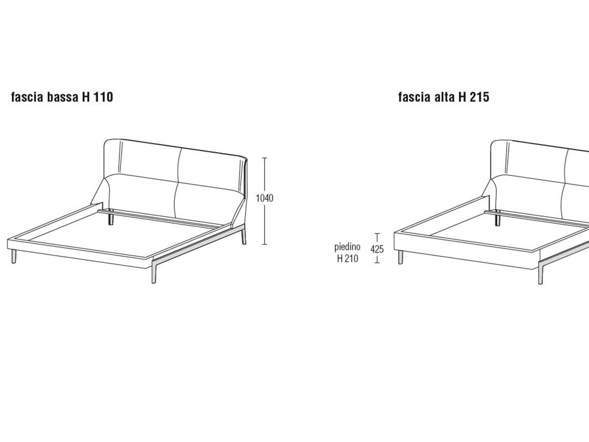 *Price valid for the version for mattress 160x200 cm (not included) – upholstery in fabric cat. A – with low bedframe band H.11 cm – wooden frame – wooden slats included (cod. FLE16B + RF/160).