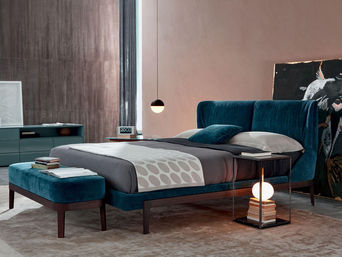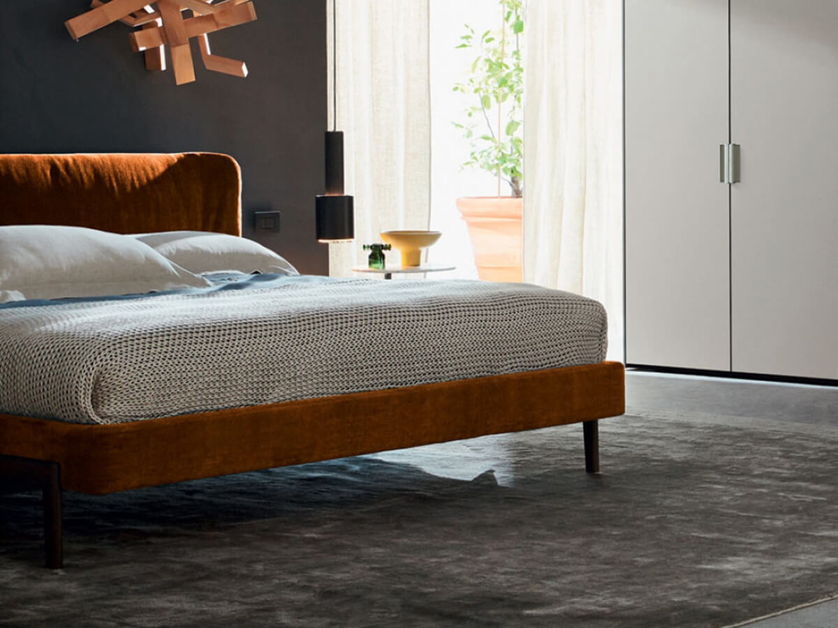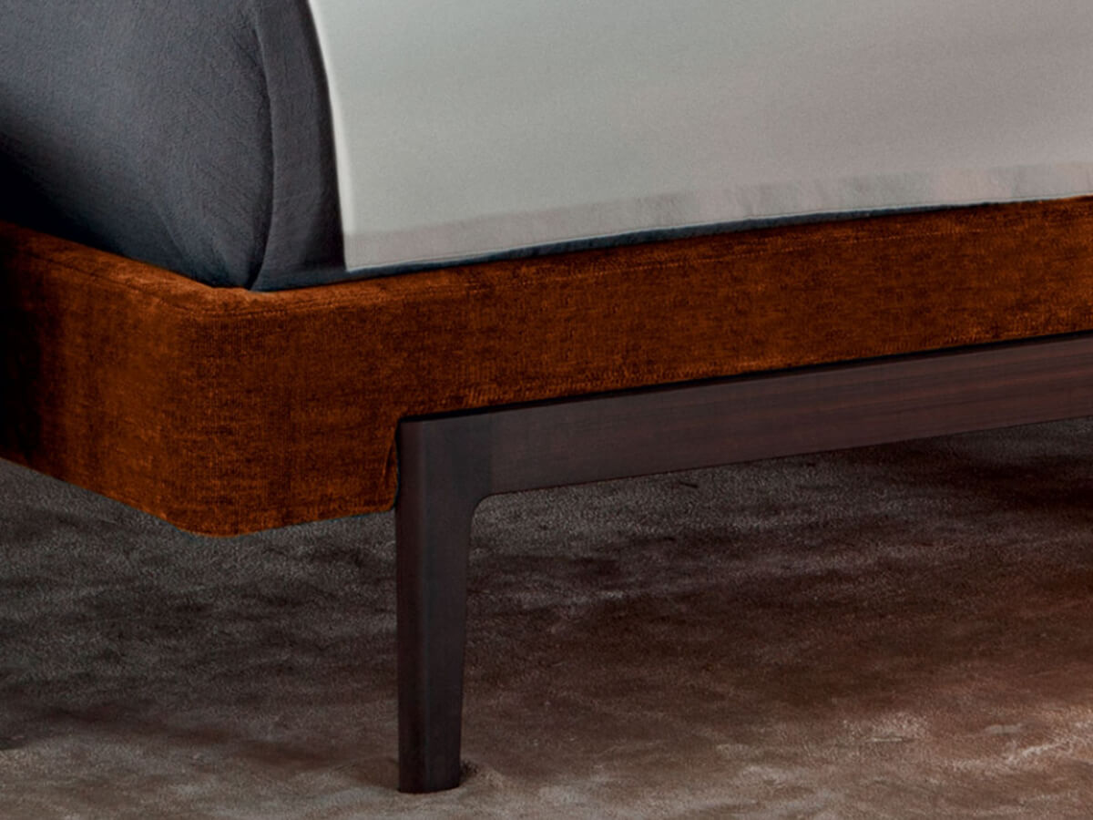 A bed with a minimal design that is not afraid to create the most congenial shapes to promote relaxation both for rest and while reading. Fulham Road gives its name to this elegant piece of furniture for the sleeping area, capable of combining charm and comfort in a single solution. The Fulham base is made of solid wood and is available in different colors to easily integrate with any desired style. The headboard is enveloping and compact, structured to create a comfortable dining environment around itself. The numerous finishes and colors available make Fulham a comfortable and impressive choice, ideal for those who want to indulge in a little rest without neglecting their aesthetic sense.* Technical features: available with low H.11 cm or high H.21.5 cm bed frame