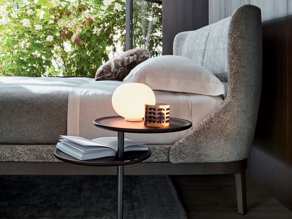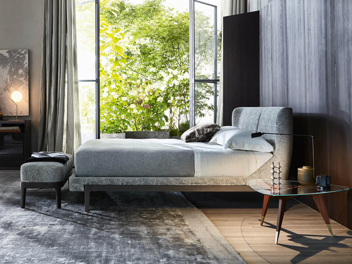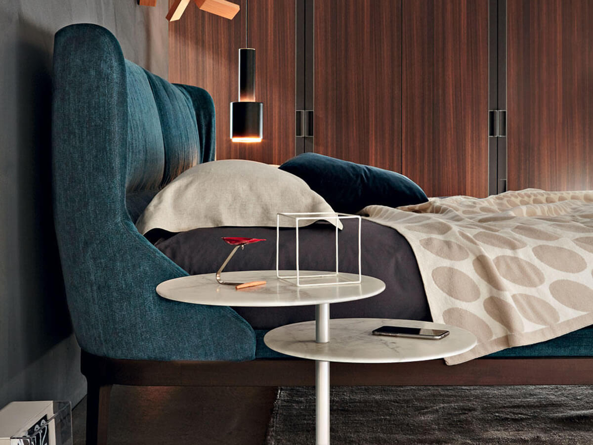 A bed with a minimal design that is not afraid to create the most congenial shapes to promote relaxation both for rest and while reading. Fulham Road gives its name to this elegant piece of furniture for the sleeping area, capable of combining charm and comfort in a single solution. The Fulham base is made of solid wood and is available in different colors to easily integrate with any desired style. The headboard is enveloping and compact, structured to create a comfortable dining environment around itself. The numerous finishes and colors available make Fulham a comfortable and impressive choice, ideal for those who want to indulge in a little rest without neglecting their aesthetic sense.* Technical features: available with low H.11 cm or high H.21.5 cm bed frame