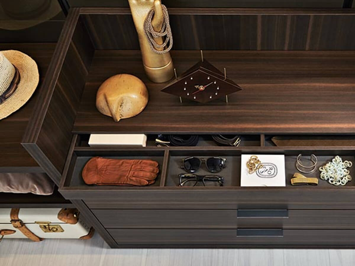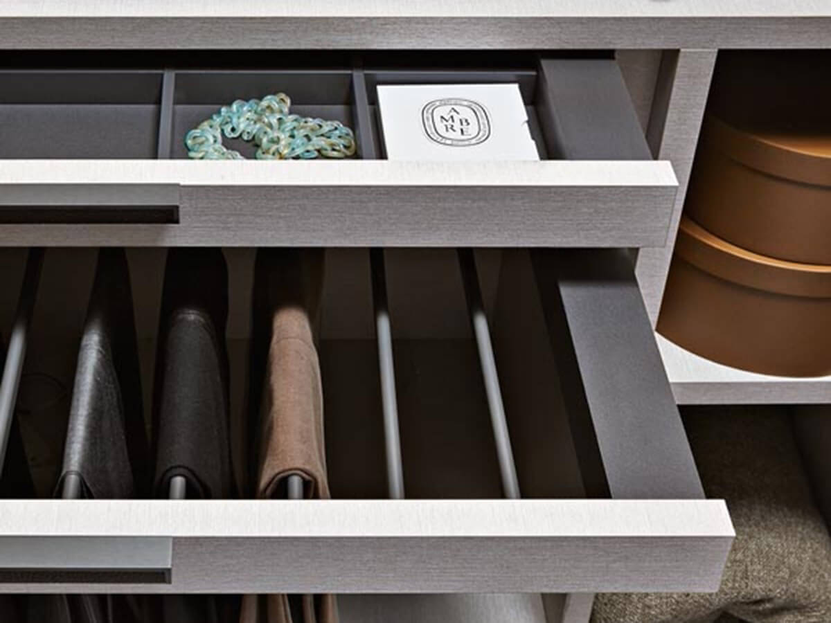 The Gliss Master wardrobe represents the fulcrum of the Molteni & C. proposal for the sleeping area: a wardrobe system that covers the high end of the market, offering fine finishes and refined construction details, dedicated to design connoisseurs and also for the sleeping area. they do not want to be satisfied with the simpler proposals. A search for excellence that also continues in the choice of internal equipment: in addition to all the classic set of drawers, shoe racks, pull-out trays, shirt holders and much more, Molteni & C. allows you to equip the wardrobe compartments with the exclusive system Aircub ® purification, which eliminates harmful agents by predicting the formation of mold and bacteria. The Start door represents the most versatile declination of this system: in fact, it allows hinged, sliding and coplanar configurations and a wide choice of handles and finishes, from matt and glossy lacquers to essences, passing through the refined processing of the melamine characteristics of the range. Molteni & C.