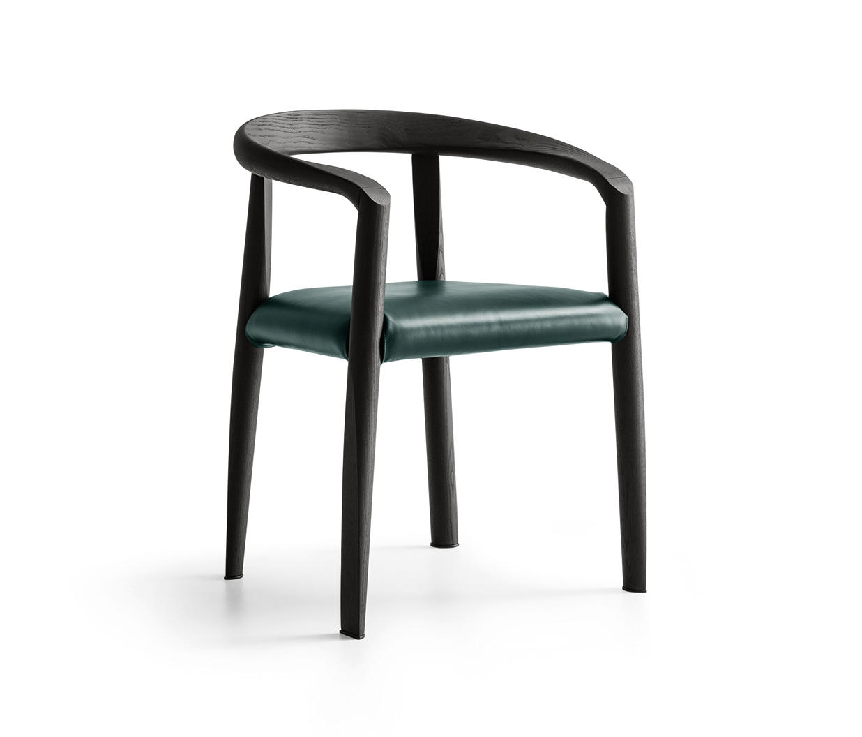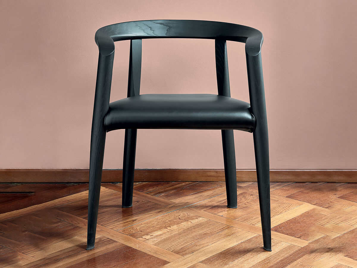 From the creative genius of Afra and Tobia Scarpa comes MHC.3.Miss, an incredibly elegant and evocative seat, able to structure itself on a continuum of soft lines that create rhythms and tunes. The legs are thin and slightly apart to promote stability. The front ones, in particular, fold to transform first into armrests and then into the wide backrest, expertly cut to accommodate the body and promote relaxation. The rear ones are connected to it by propping up the structure. The seat fits between the vertical lines creating a point of union. This cushion is padded to promote a feeling of comfort. Tobia Scarpa has redesigned the joint of the armrests to make it more linear and comfortable.
