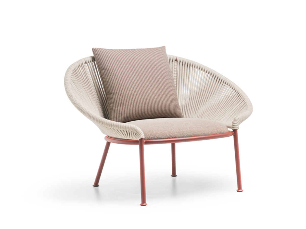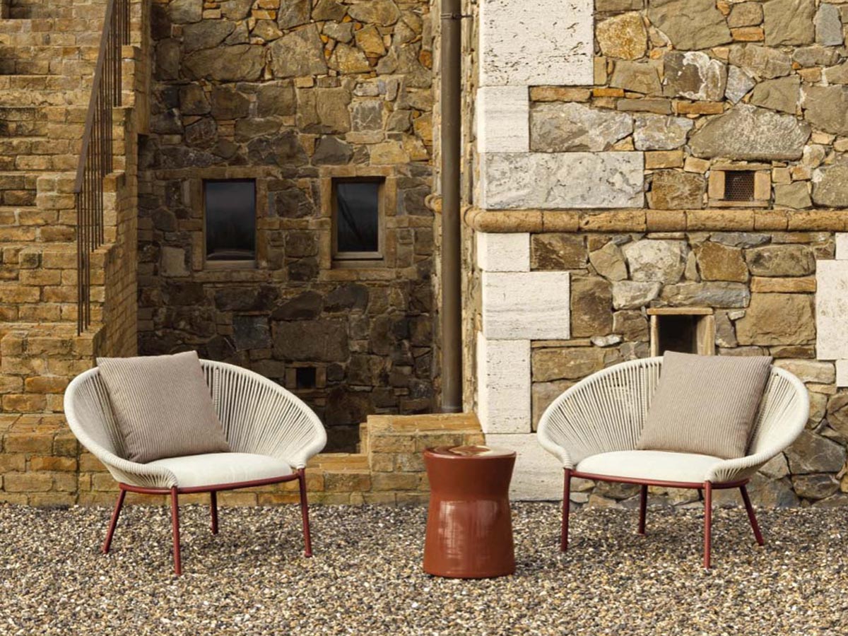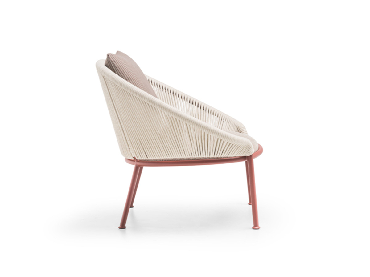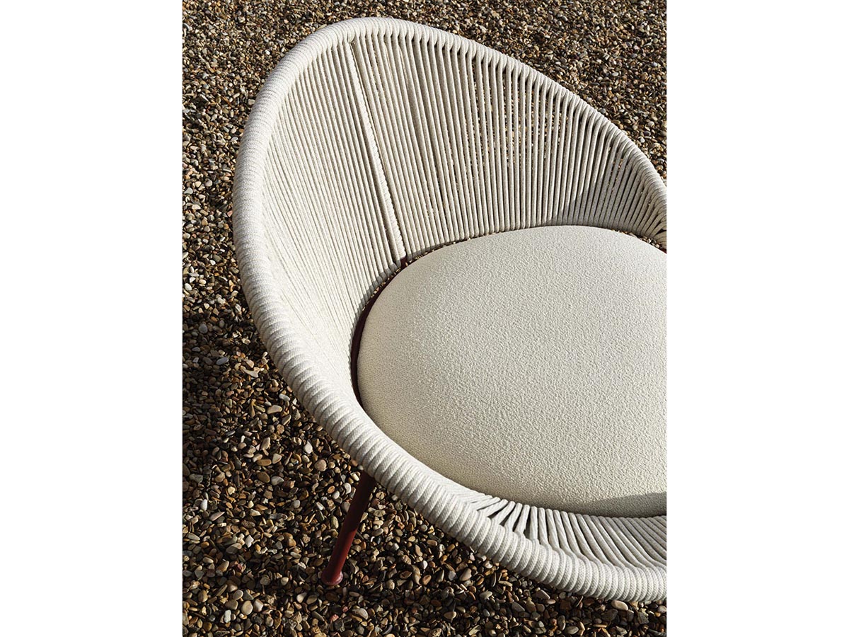 *Price valid for the version with low backrest H.75,7 cm - upholstery in fabric cat. B - frame in Merlot red varnished aluminium and weaving in ecrù cord - back cushion 50x50 cm included (cod. PPB11 + PCU50).