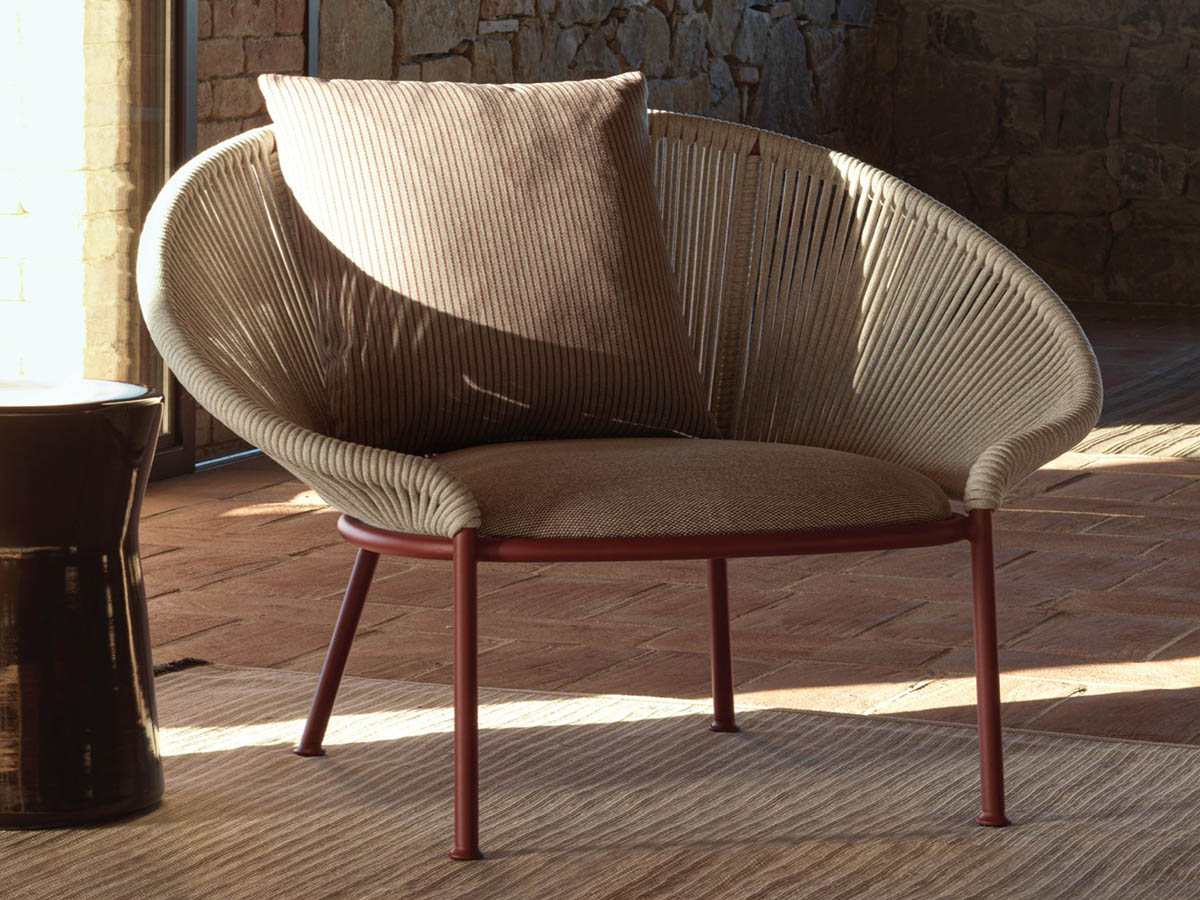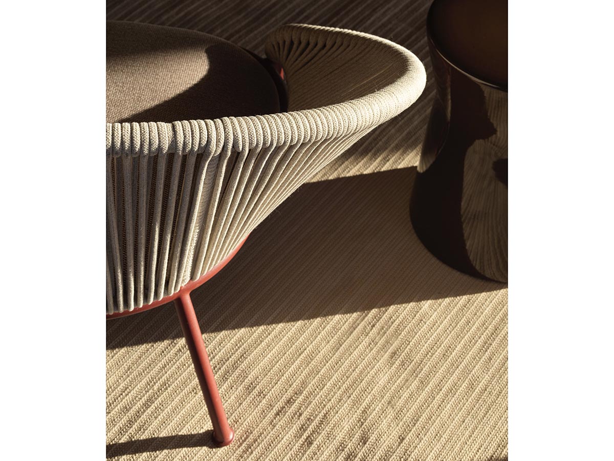 An armchair with an extremely strong and distinctive design, which is not afraid to dare and take expressiveness to the highest levels. Petalo is an armchair including a pouf, created by Vincent van Duysen for Molteni&C. and belonging to the Outdoor Timeout collection. It is a seat with soft and enveloping curves, which seem to invite the body, welcoming it in unprecedented comfort. The beauty of the seat is also due to the precious workmanship of the rope, here clearly visible in the backrest, available in both a high and low version, depending on the need. The woven motif, which recalls the nautical world, is elegant and at the same time water-resistant, to facilitate use in the open air.