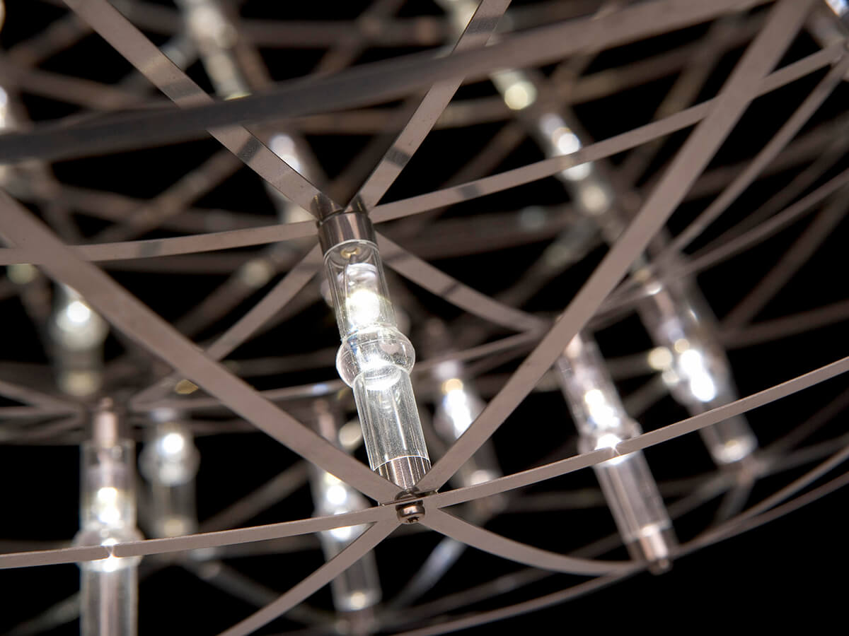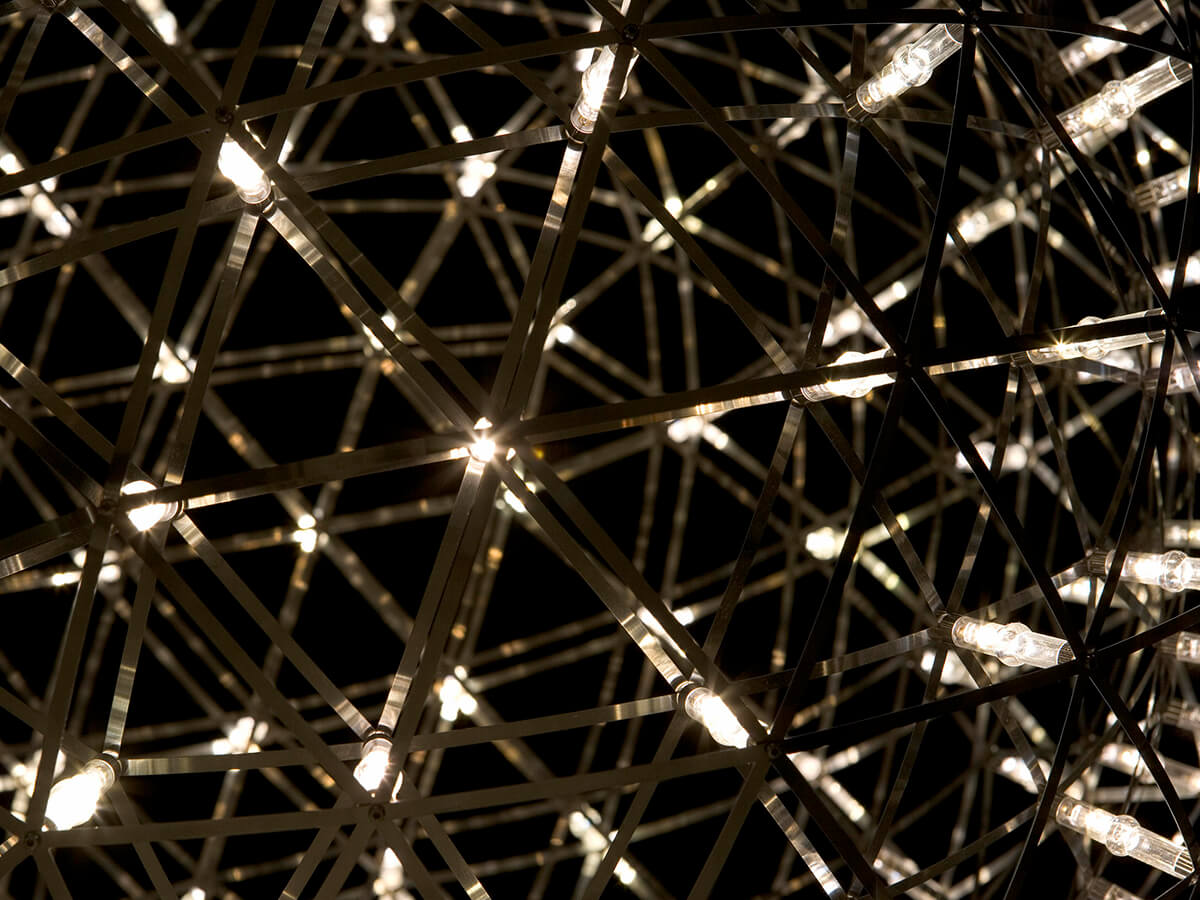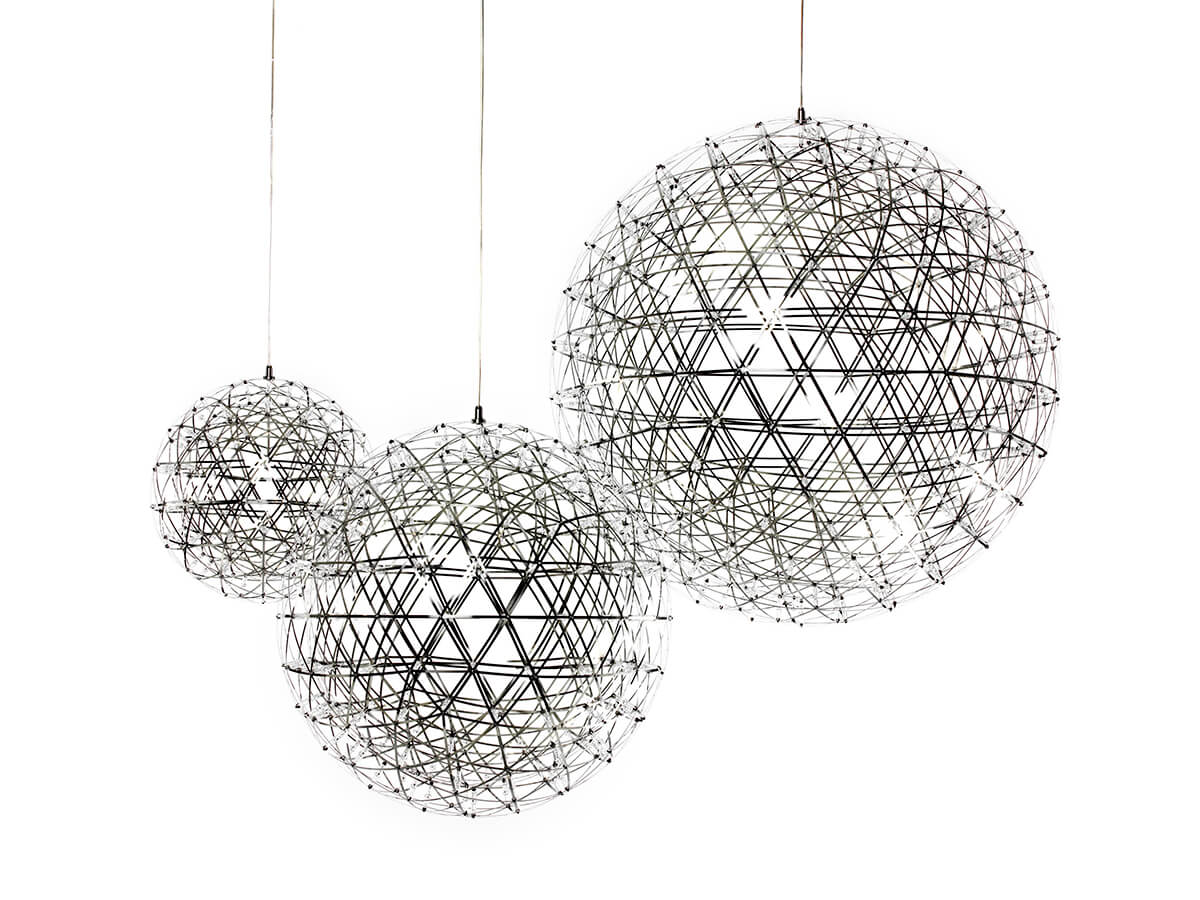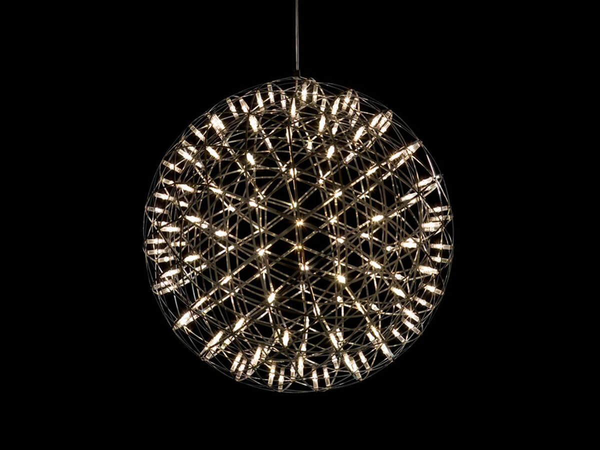 Graceful and surreal, Raimond is a lamp that seems to be inspired by the future and by a design idea that focuses on the essence and the ability to enhance the use of materials thanks to unique, visually attractive geometries. The Raimond lamp by Moooi was born as a perfect sphere of mathematical ingredients and a punctuation made of tiny LED lights. The effect reminds a starry night. Transparent lenses are affixed close to each light in order to guarantee a uniform and shadow-free diffusion. Thanks to the attention to these details, Raimond fits well in different contexts, from dining rooms to restaurants, lounges, halls and more.