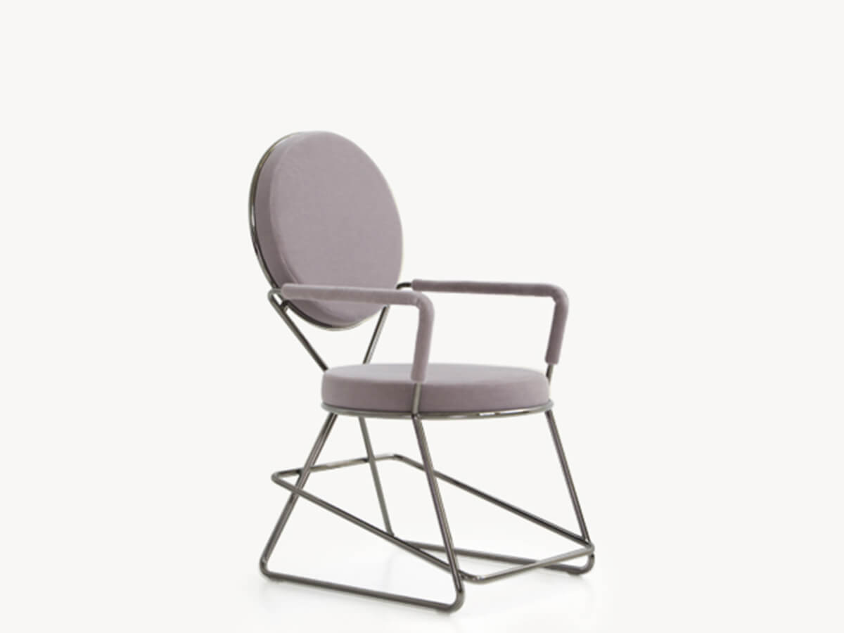 The luxurious Double Zero chair by Moroso reveals a clear Art Decò inspiration in its lines and bases its shapes on two padded circular elements that take on the function of seat and backrest. The two circles are connected by thin steel tubes, with an effect that seems to make them float in the air. Double Zero is also embellished with an exceptional signature: it was in fact conceived by the British star architect Sir David Adjaye, the first person born in Africa to be awarded the Royal Gold Medal for architecture. The chair is available both in a comfortable version with armrests and in one that does not have them and which, thanks to the reduction of the lines, maximizes the geometric concept.