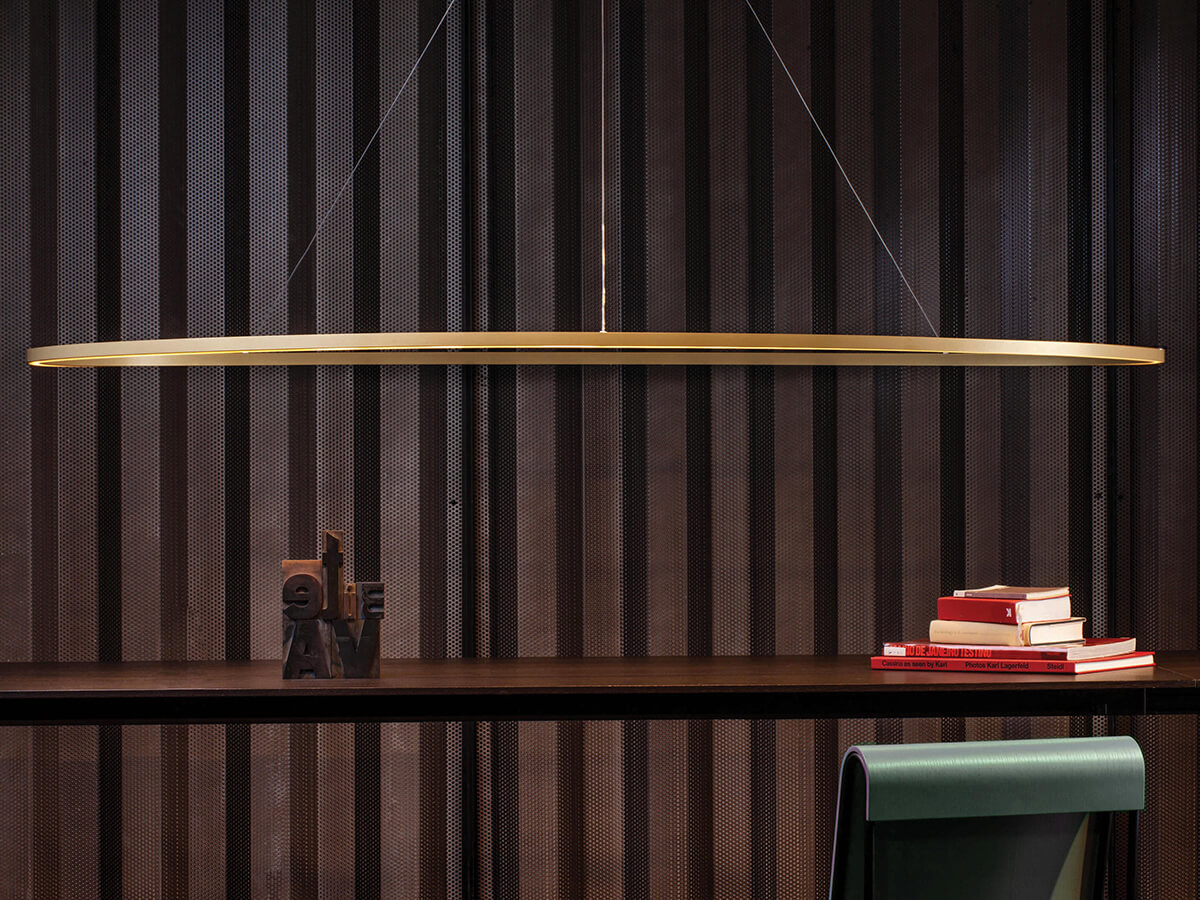 With a precious and contemporary aesthetic, the Ellisse suspension lamp by Nemo is today one of the great bestsellers of the brand. It bases its charm on the various elaborations of an archetypal form, precisely that of the Ellipse, declined in different variations: the Major and Minor versions are made up of a single element and can be mounted either parallel to the ceiling or slightly inclined, giving thus a greater sense of dynamism; the Double and Triple versions instead play with the intersection and overlapping of several elements. Finally, the Mega version consists of a single huge and spectacular ring. Ellisse is made of extruded aluminum to which an opal methacrylate diffuser is attached. The conjunction between the two different components, perfectly harmonious and without connecting elements that could disturb the balance of the shape, is achieved through a technology developed exclusively by Nemo.