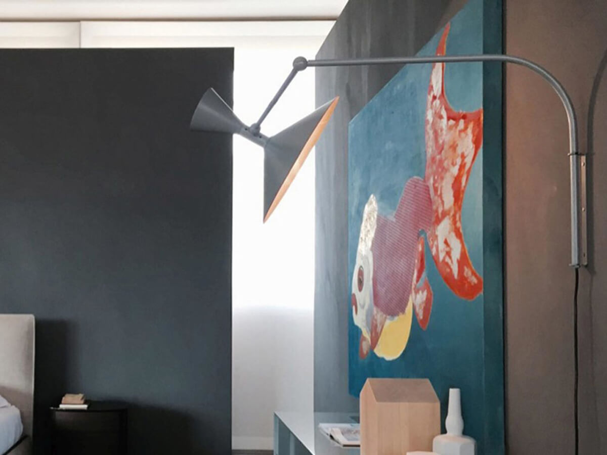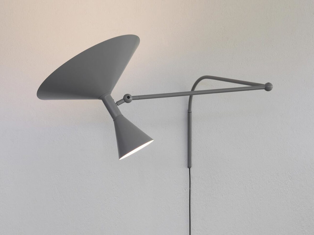 A lamp with a timeless charm, able to fascinate fans of the sector yesterday as today, without ever losing its enamel. Designed by Le Corbusier for the Marseille apartment in 1949/52, it has since then been able to carve out its own space in the collective taste, marking the pace of many subsequent works. It is a wall lamp with two joints on the arm and a wall attachment that allows it to rotate. Marseille is available in different versions including Mini, practical and easy due to its small size. It is made of aluminum with a turned sheet diffuser. Among the many variants, we mention the ones with matt gray, lime white or black painted structure and with an interior equipped with diffusers.