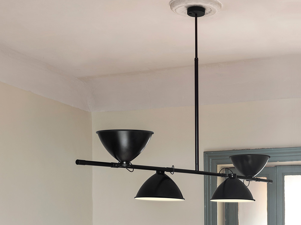 From Nemo’s production tradition and fervent imaginative touch comes the LBB01 suspension lamp, an example of simplicity applied to lucid design experience. Lina Bo Bardi designed it for the Casa del Vidro, a symbolic project of modernist Brazilian architecture, giving it a unique touch that smacks of essence and expertly orchestrated geometries. The volumes of this lamp touch and intertwine, creating continuity with the design style of the house in São Paulo. The telescopic stem and the diffusers are 360° adjustable, modeled in black painted aluminum. The result is a lamp ideal for living areas, which also finds space in more formal contexts such as offices, meeting rooms, auditoriums and much more.