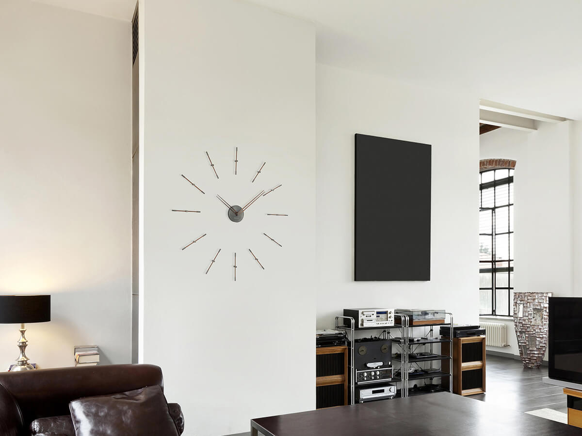 Elegance and design are summed up in a single admirable object with Merlin, a wall clock where high-end quality and luxury live in close collaboration to create something unique. The structure can be in metal and wood, with twelve elegant rods that combine different materials to create customizable compositions. The name of the collection is not accidental: the indices are in fact inspired by the magic wand of the most famous sorcerer in European history. Available in different sizes and compositions, Merlin is perfect in modern and suggestive environments.
