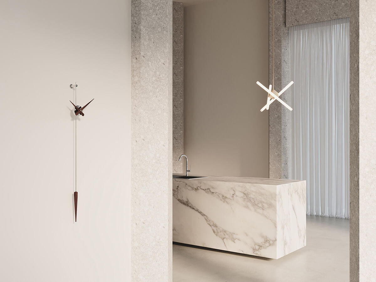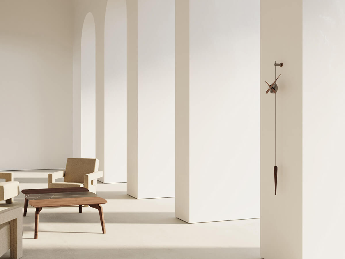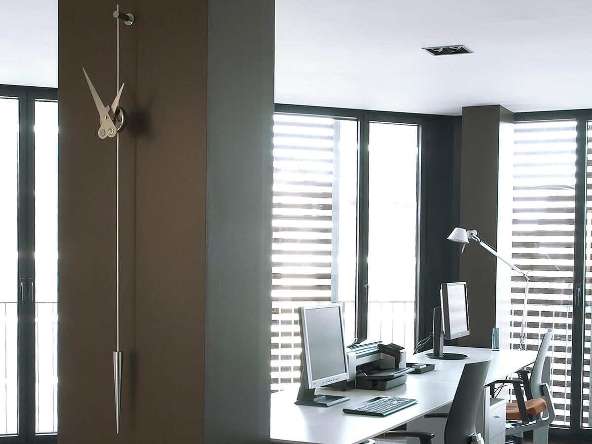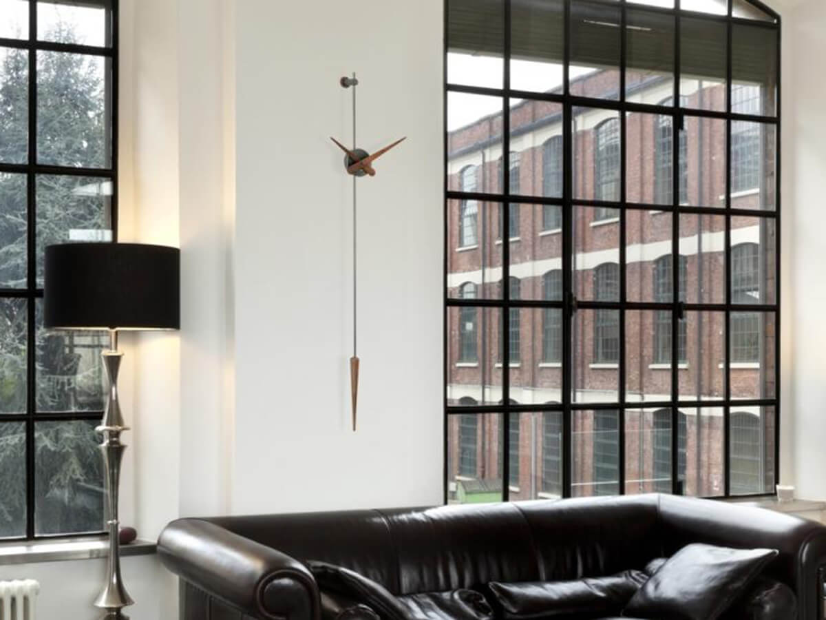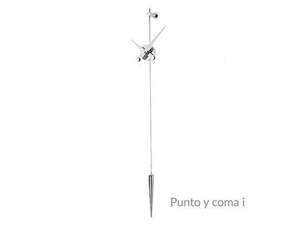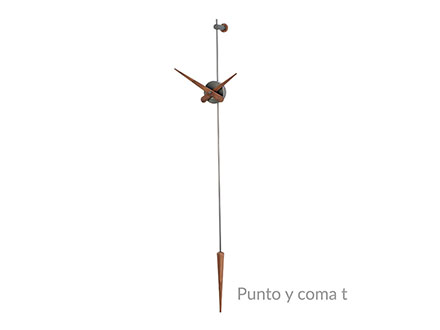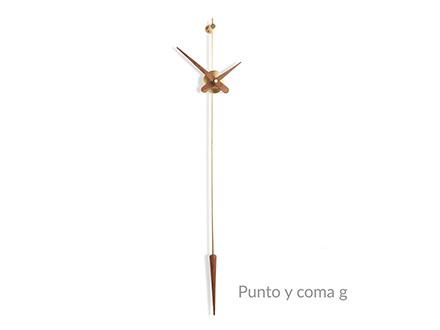 The essence in its most unique and pure form. Beautiful to look at, Punto y Coma expresses the simplest and most distinctive ideal of the wall clock. Nothing more than hands and dial, an ideal example of what is needed to read the time and mark the time. Punto y Coma is made of steel or brass and hands in steel or walnut wood with German Uts mechanism. Simple and original, this watch seems to remember a pendulum due to its shape. Ideal in living spaces, it can easily be placed in convivial spaces or offices, depending on the needs.