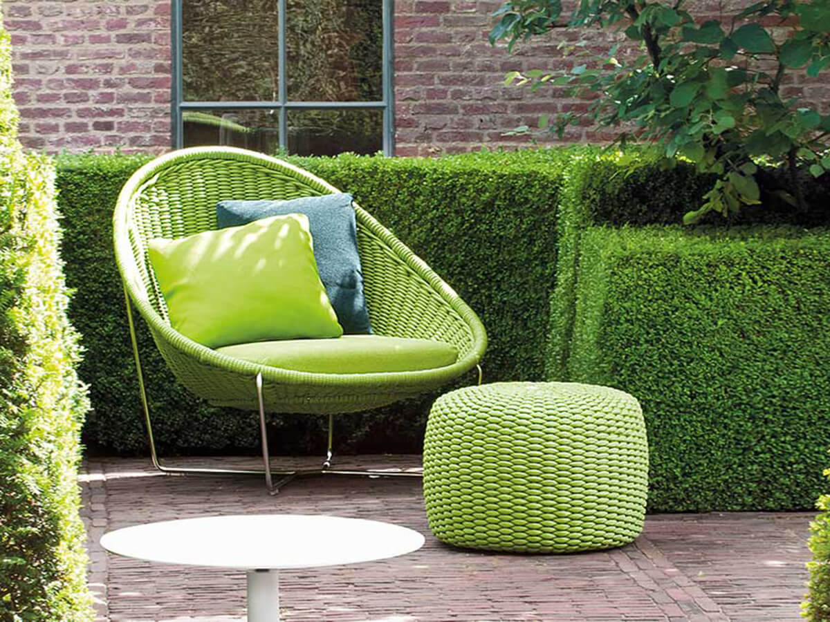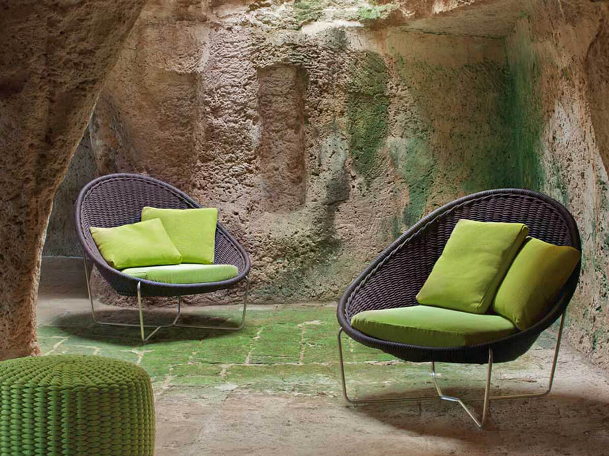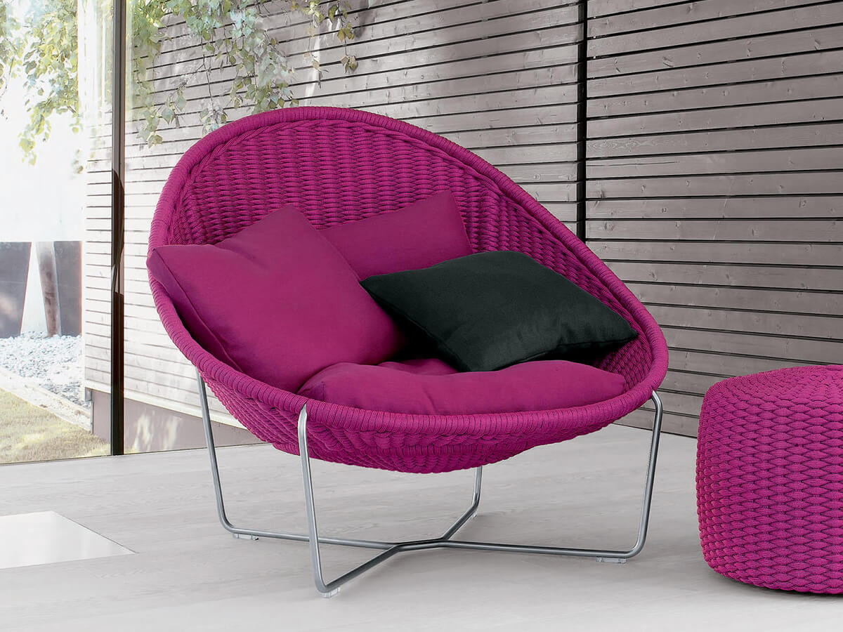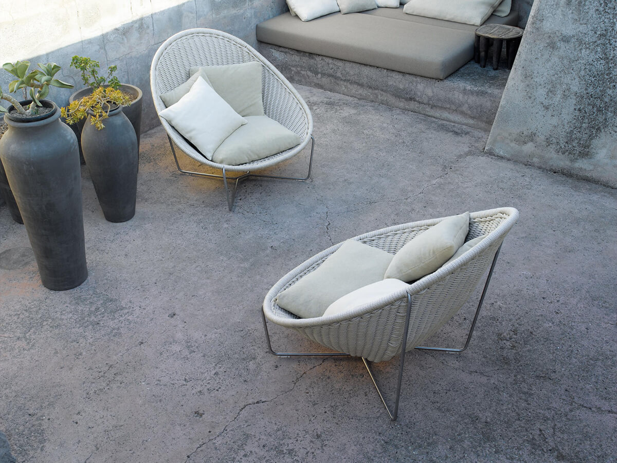 An excellent armchair, born from Paola Lenti's talent in creating unique objects, destined to last over time and accompany anyone who loves to spend their time outdoors and relax in the company of a design that is impossible to match. The Nido armchair by Paola Lenti comes with a hand-woven cover. The structure is in stainless steel with base available in different finishes. The fixed upholstery is hand-woven with Rope cord to ensure great comfort and maximum performance during sitting. To complete the well-being, Paola Lenti has inserted four cushions specially designed to accommodate the body and give a feeling of care.