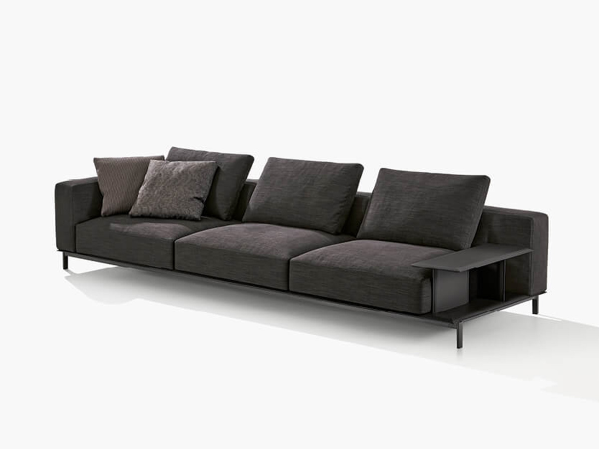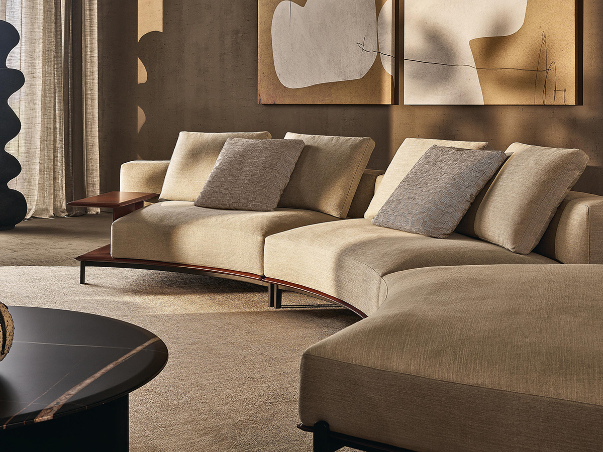 A sofa with a regular design that has numerous focal points capable of enriching its shape and embellishing its style. From the genius of Jean-Marie Masssaud, this upholstered furniture is part of the 2022 Poliform collection and takes its name from the Brera district of Milan, a hub for high-end design. The beauty of this model stands out for the numerous linear and curved elements which, when intertwined, can give life to personalized and unique compositions, ideal for adapting to numerous living contexts and especially living areas. The generous shapes create the perfect conditions for comfort and relaxation as well as for convivial moments with family and friends. The numerous colors and finishes available highlight Poliform's potential for fabrics and leather, as well as the meticulous details that have always characterized the artisanal production of this company.