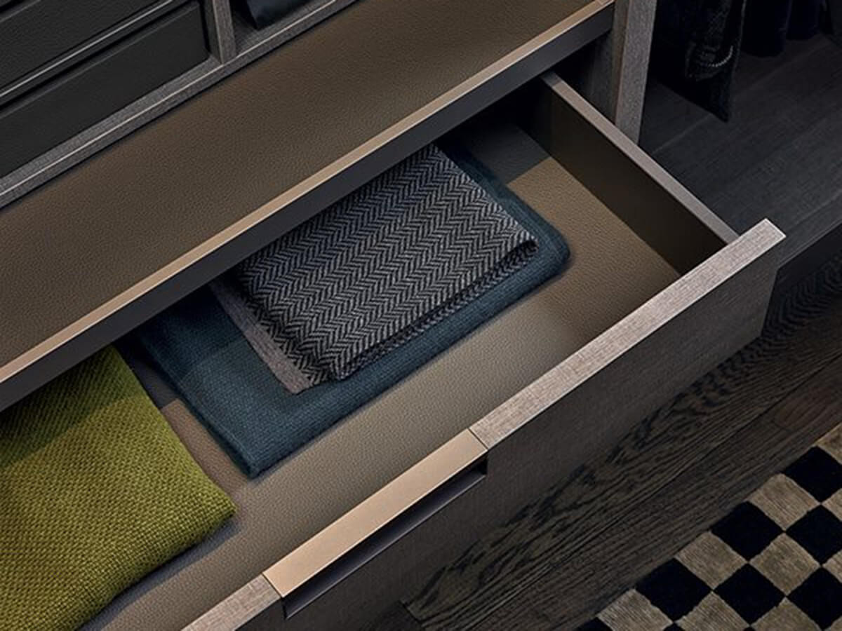 Elegant and refined, the Canvas wardrobe is subjected to a particular processing of the melamine doors that reminds them of the delicate texture of a fabric. The whole is framed by a refined perimeter border, available in different colors, which gives balance and harmony to the whole.Canvas is part of the broader system of Poliform Senzafine wardrobes, which allow the creation of flexible compositions adaptable to every need. The Canvas door can therefore be used to create sliding, hinged or coplanar wardrobes and is customized by the wide range of Poliform handles available.