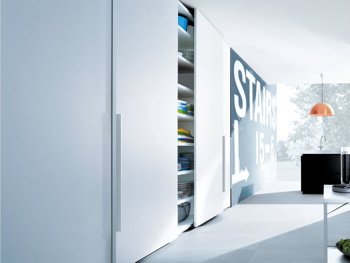 The Club wardrobe by Poliform is the simplest and most essential variation of the inexhaustible Senzafine wardrobe system, which forms the backbone of the Poliform proposal in the sleeping area. Of this extensive collection, Club constitutes the "zero degree", through its simple melamine doors without frills and frills. A neutral base on which to start to compose the wardrobe of your dreams, hinged, sliding or coplanar, available in the most diverse shapes and equipped as desired. Also for the openings the compositional possibilities are endless, being able to draw on the vast and appreciated range of Poliform handles.