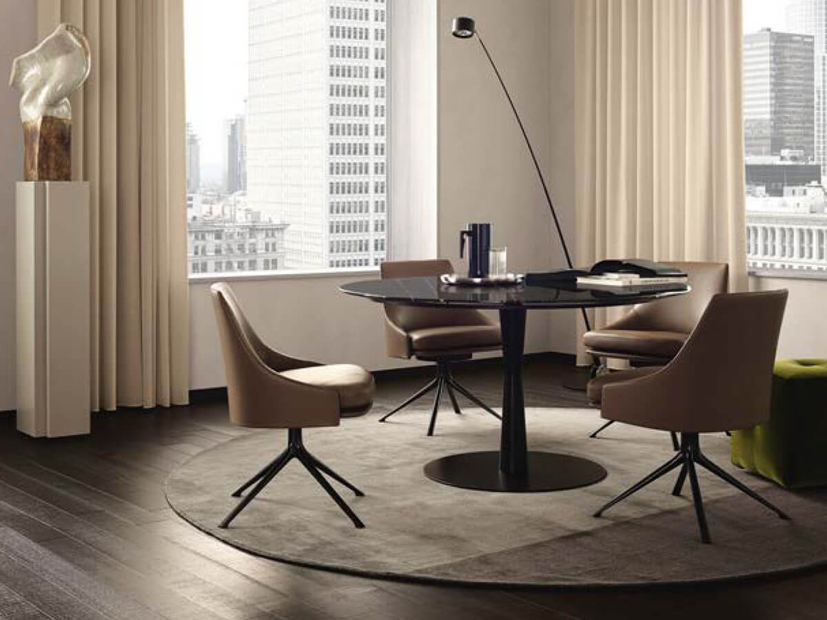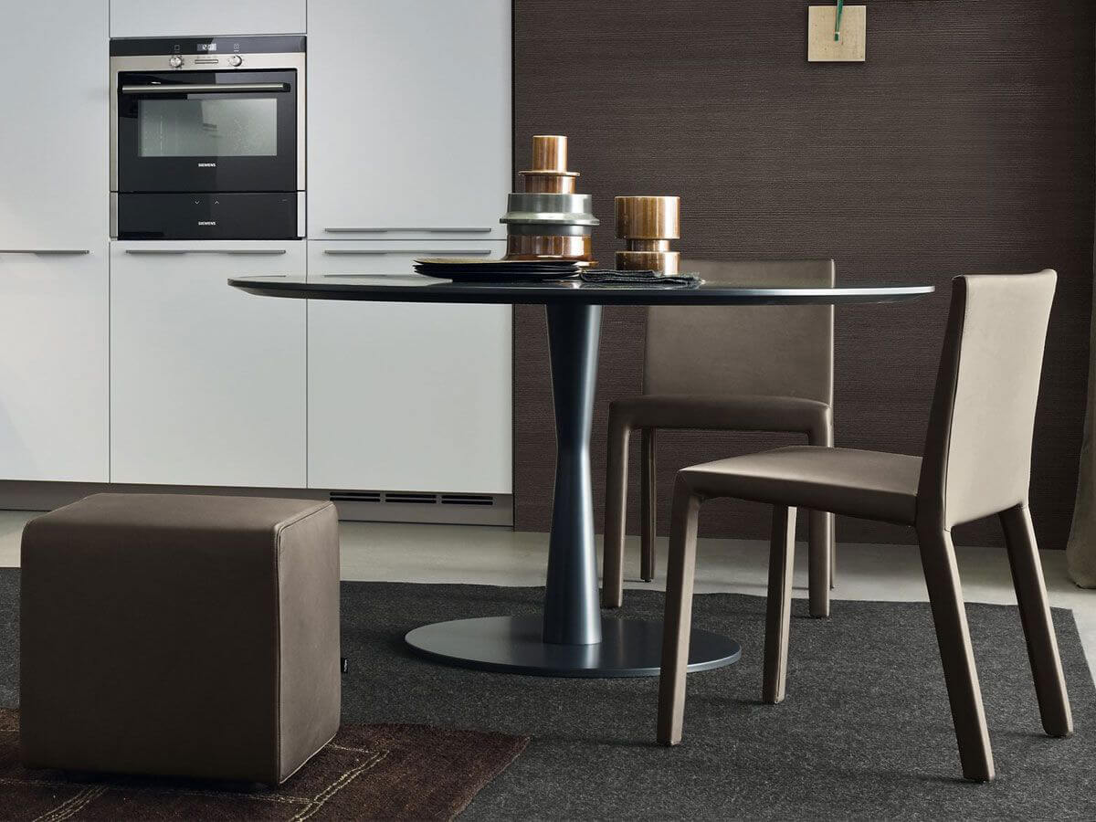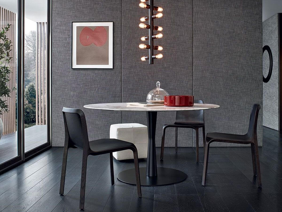 Poliform furnishings are often characterized by a strong stage presence combined with the essentiality of forms that disdain any abundance to embrace the pure essence of functionalism. In perfect synchrony with this thought we find Flute, the table designed by Roberto Barbieri whose value is measured precisely in the genius of condensing a few simple features into a whole of extreme elegance. The round shape of the top available in fiber panel is grafted onto the single drawn aluminium leg. Available in different finishes and colours, Flute is perfect for those who want to stand out without ostentation.